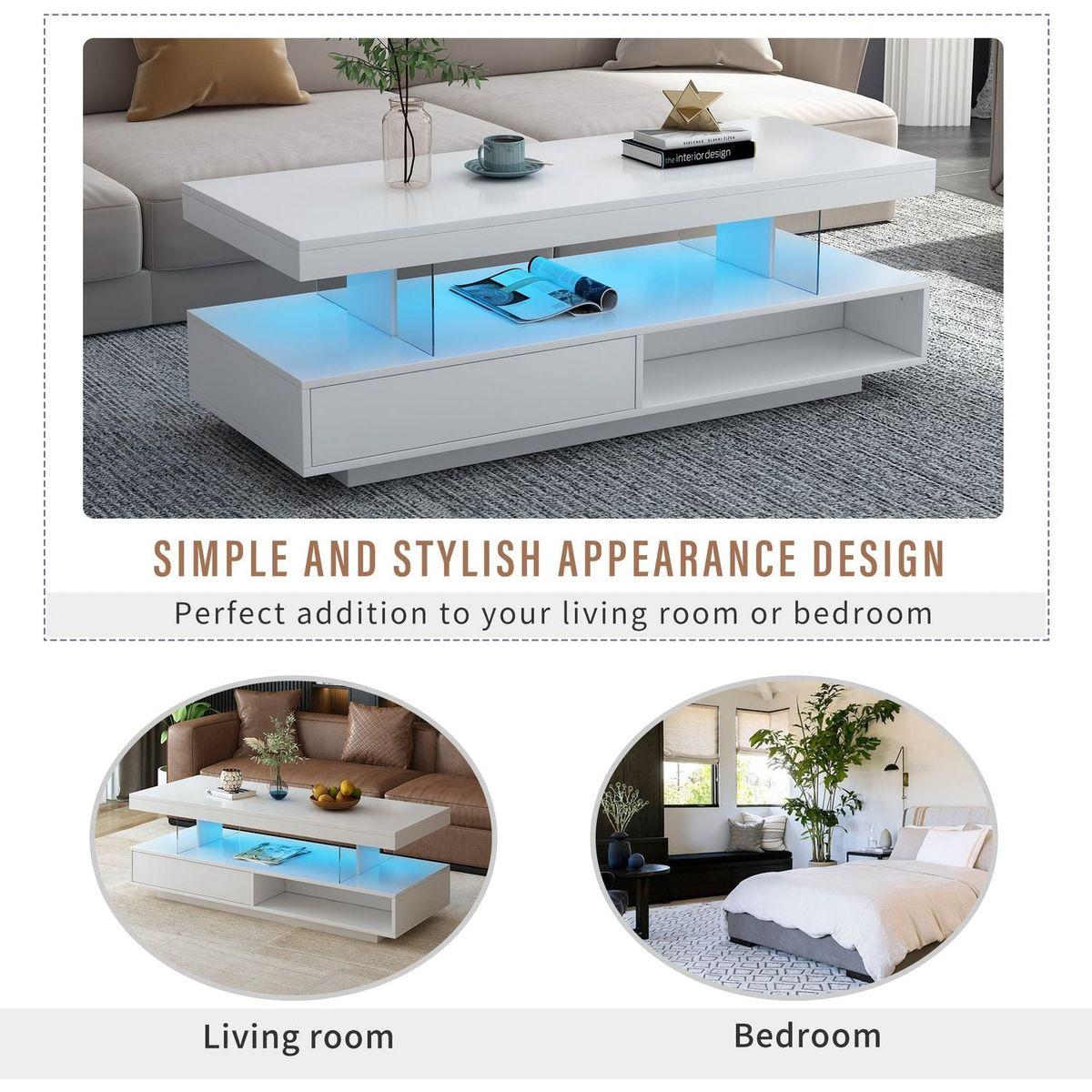 - High Gloss & Sturdy-- The simple and stylish LED coffee table with spacious tabletop adds extra elegance and modernity to your living room. It's made of high-quality Particle board, which is long-lasting and resistant to wear and tear.