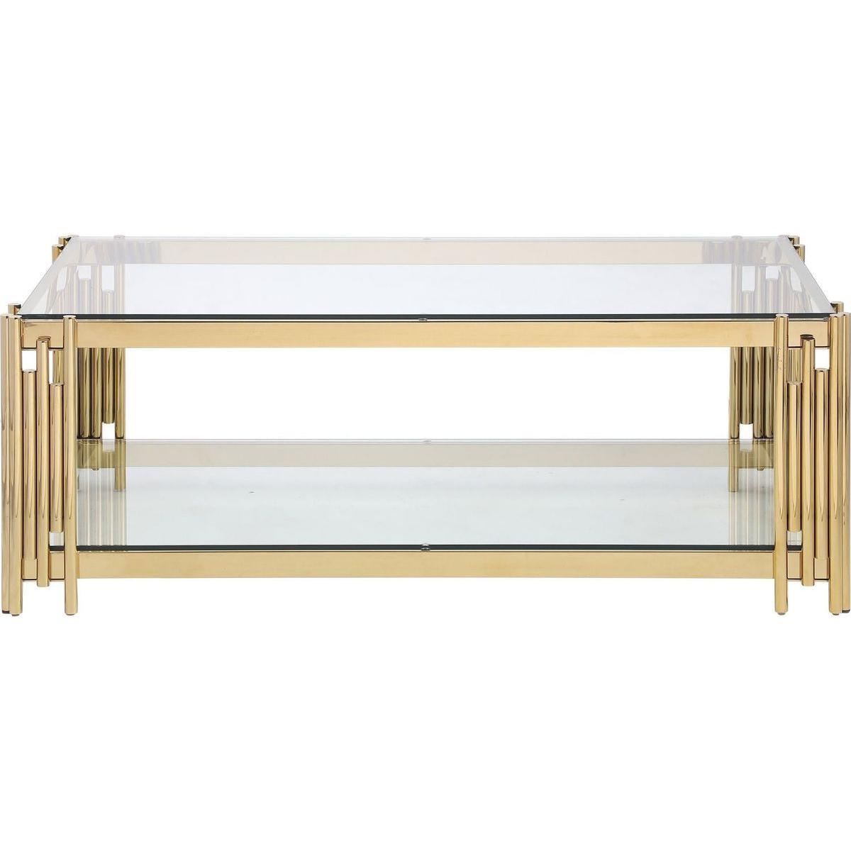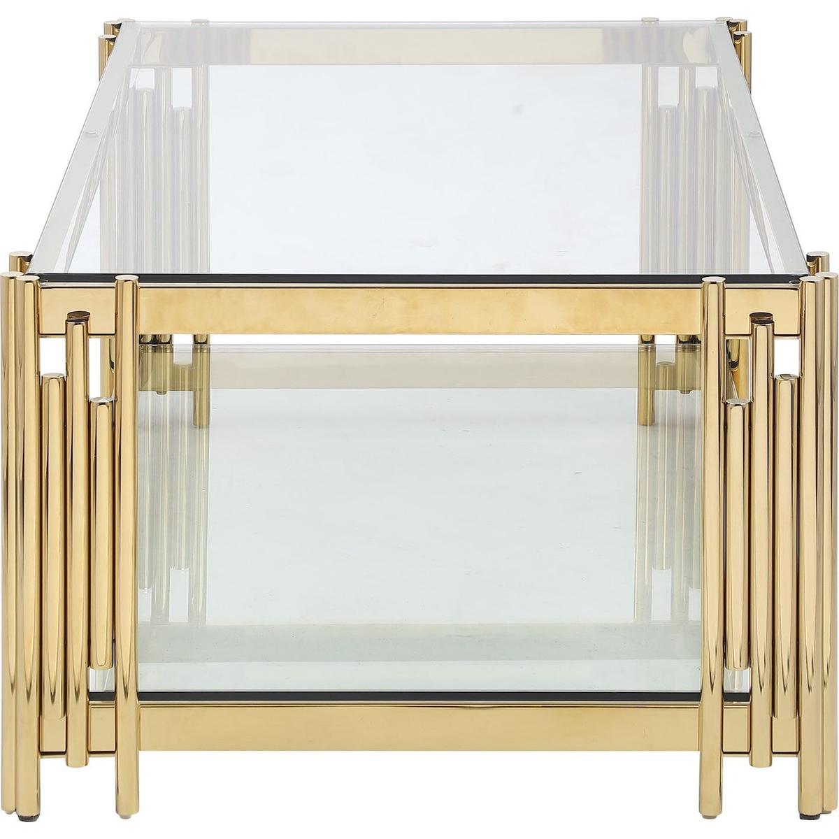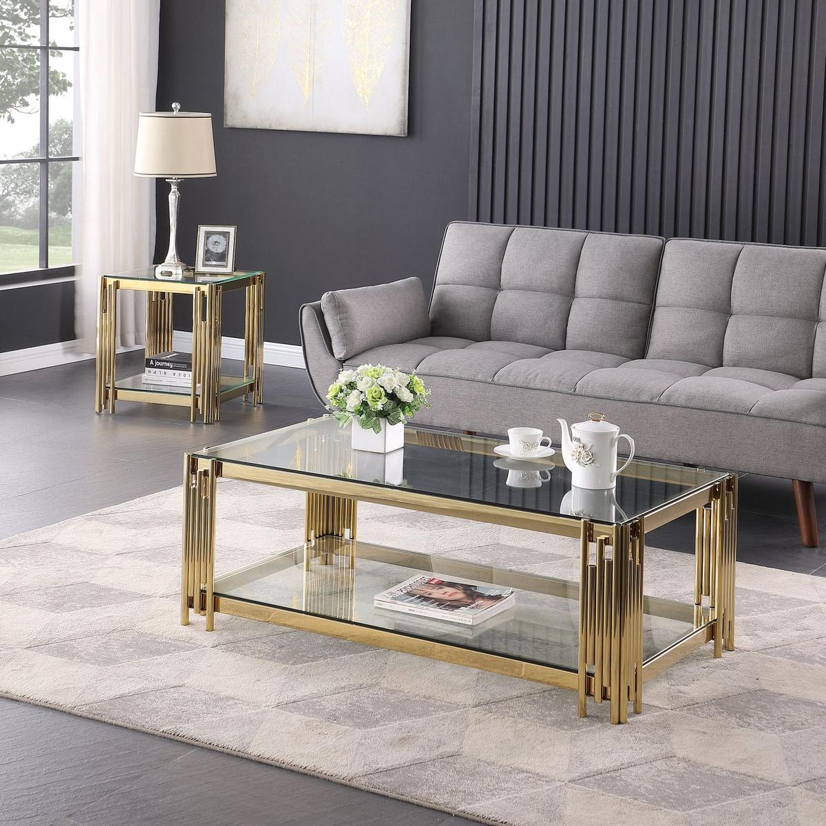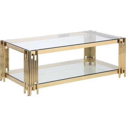 Woker Furniture 48" Wide Rectangular Coffee Table with Glass Top, Golden Stainless Steel Double-Layer Coffee Table for Living Room