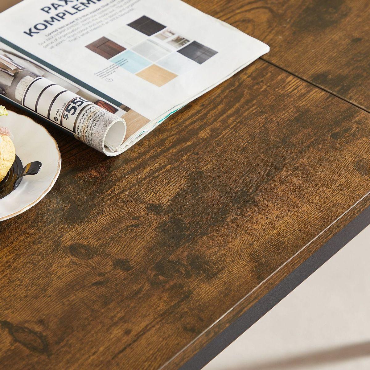 - The rustic brown particle board and high quality black iron frame create a minimalist style, while the PU upholstered seats give an industrial feel and comfort. When not in use, you can put two stools under the table, which will not hinder your access and keep it clean and beautiful, perfect for small spaces. Suitable for living room, dining room, kitchen, study, bar and other places.