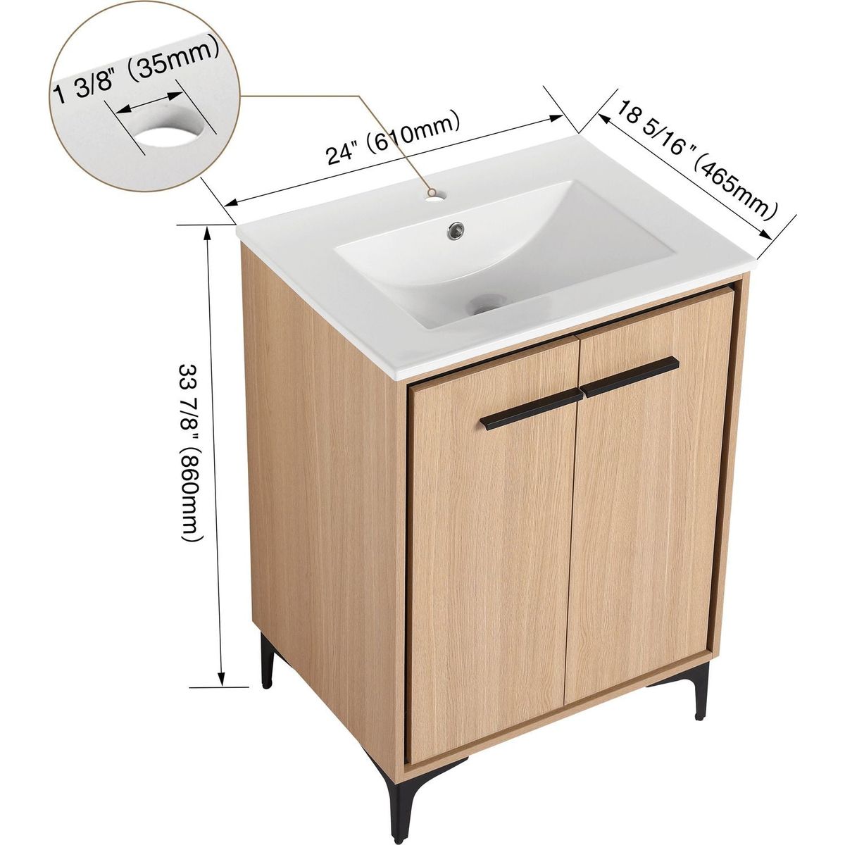 24 Inch Bathroom Vanity Base with basin, Storage Cabinet with Doors, Engineered Wood