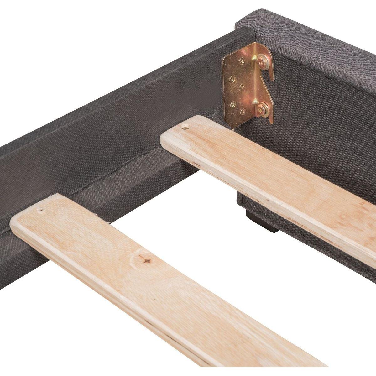 - [No Box Spring is required] This queen-sized bed frame comes with many wooden slats, and as such this bed doesn't require a box spring. Mattress is not included. backrest is included as a comfy linen fabric backrest that brings you and your partner a cozy feeling.