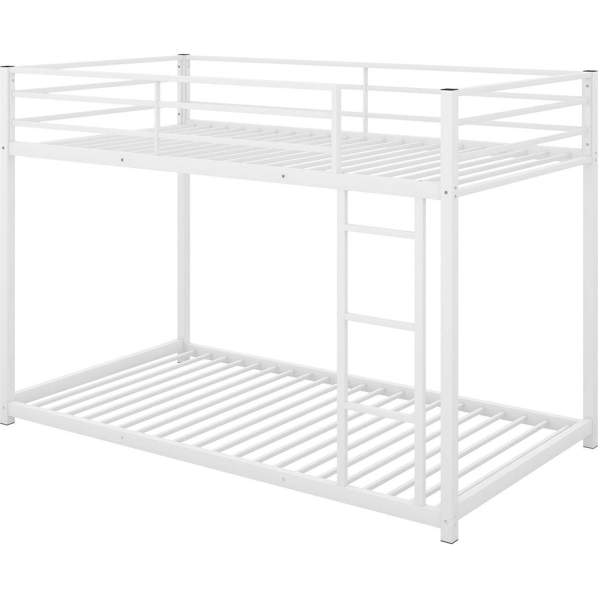 Twin over Twin Metal Bunk Bed, Low Bunk Bed with Ladder,White