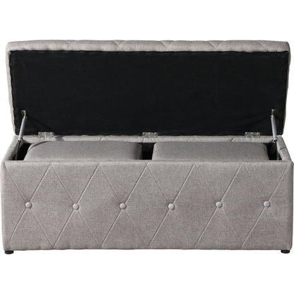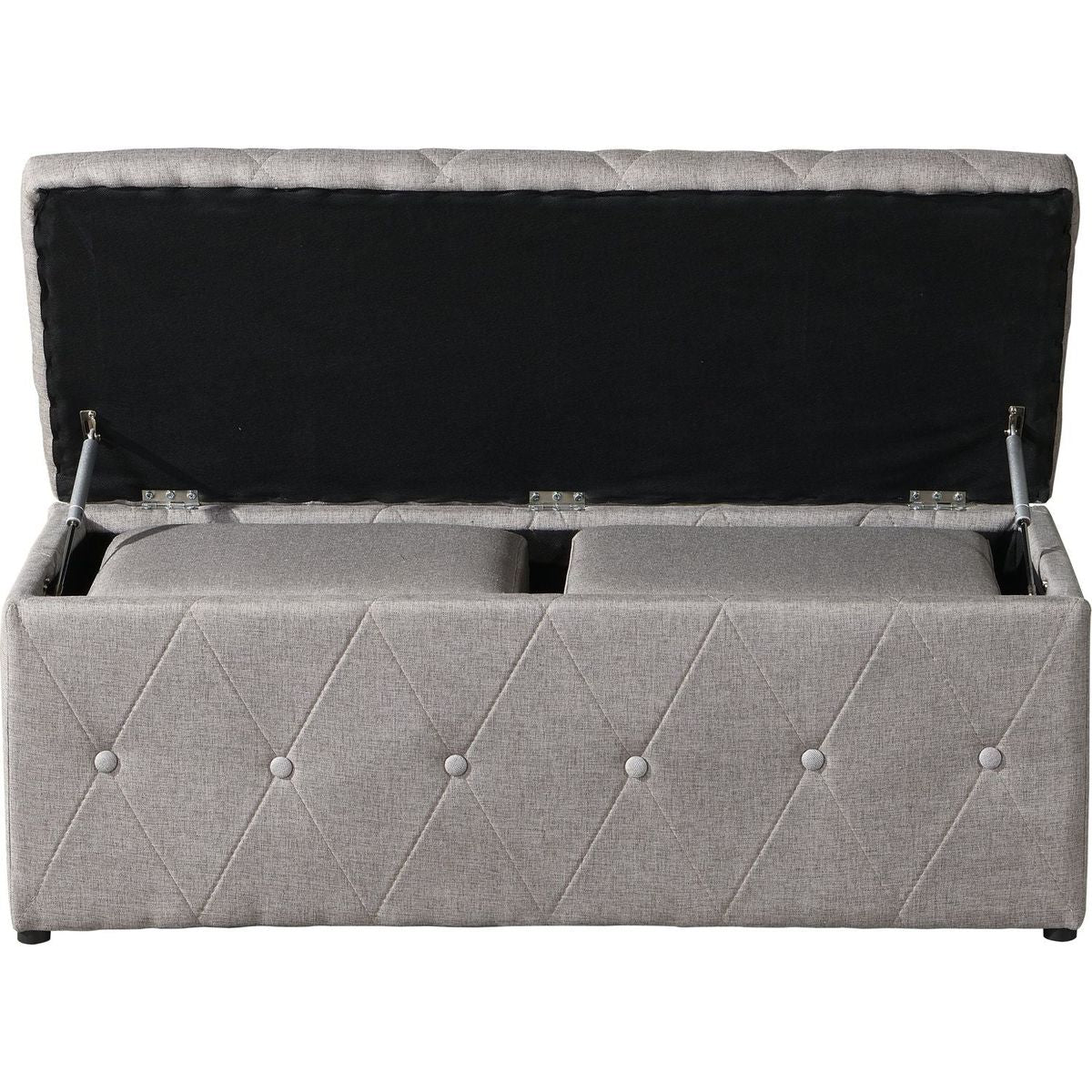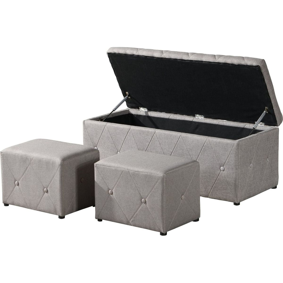 1 Piece Rectangular Storage Ottoman Fabric Linen with 2 Set Ottomans (Beige)