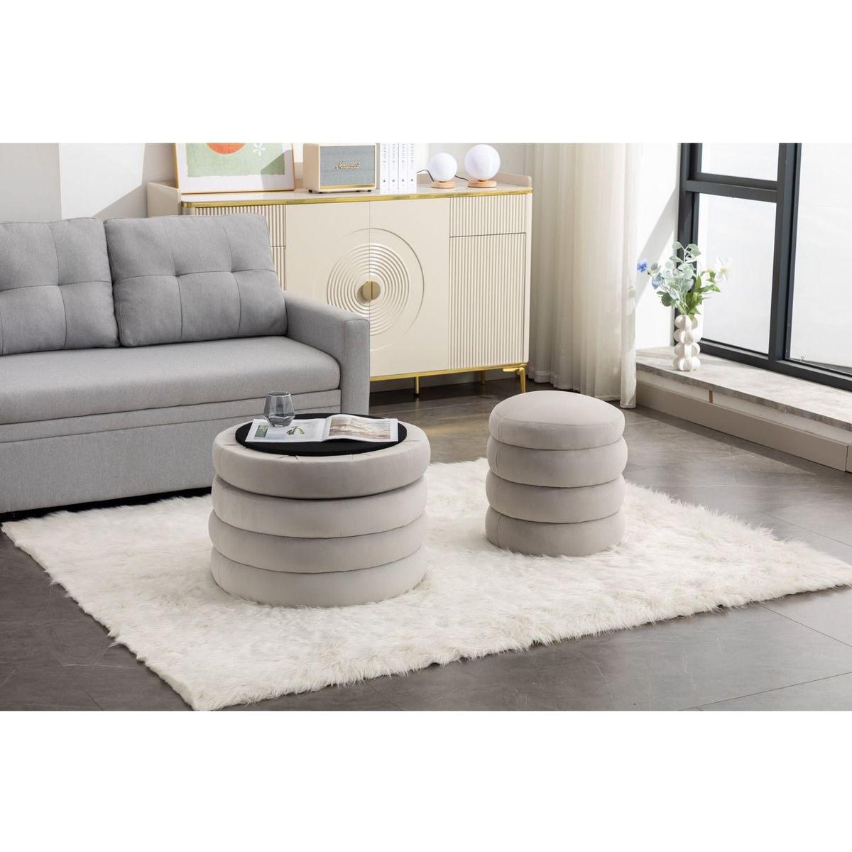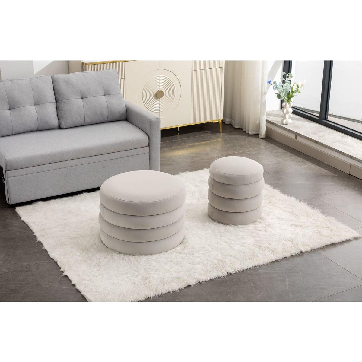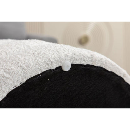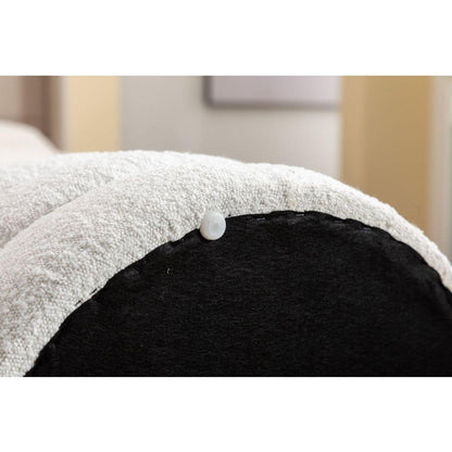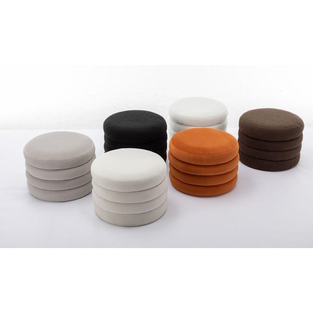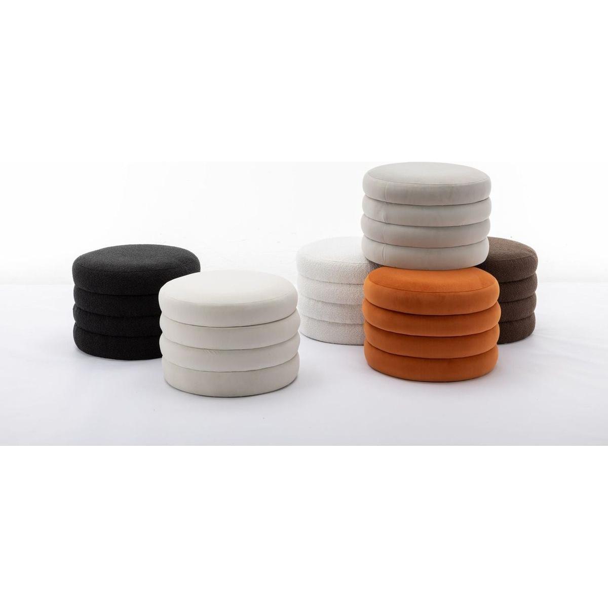 Boucle Fabric Storage Round Ottoman Footstool With Wooden Shelving,Ivory