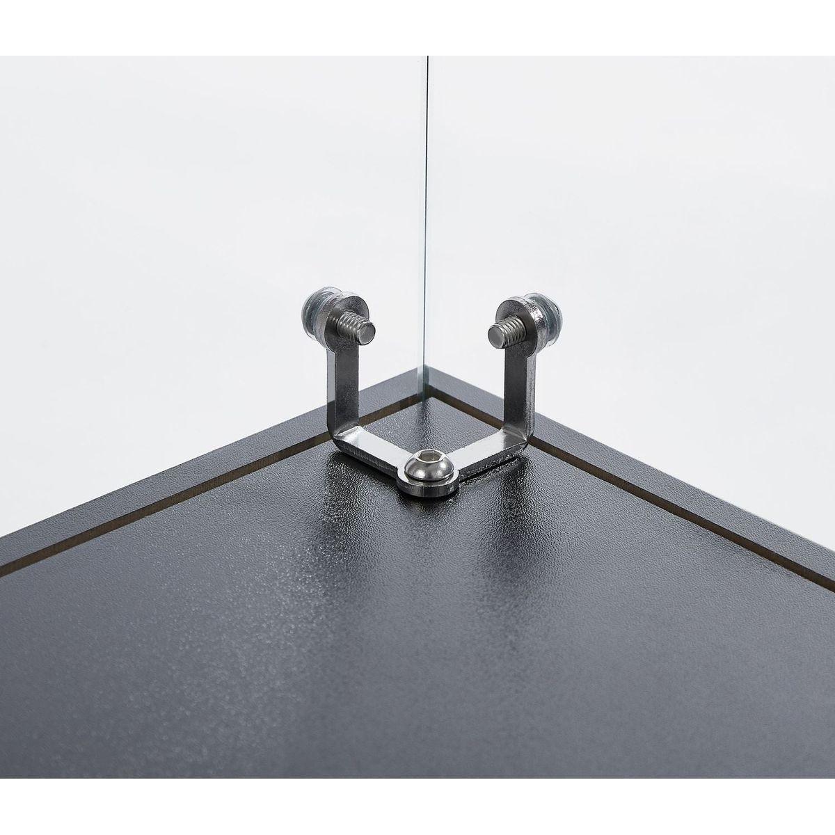 Metal connectors keep the glass and boards together for a sturdy and stable fit.