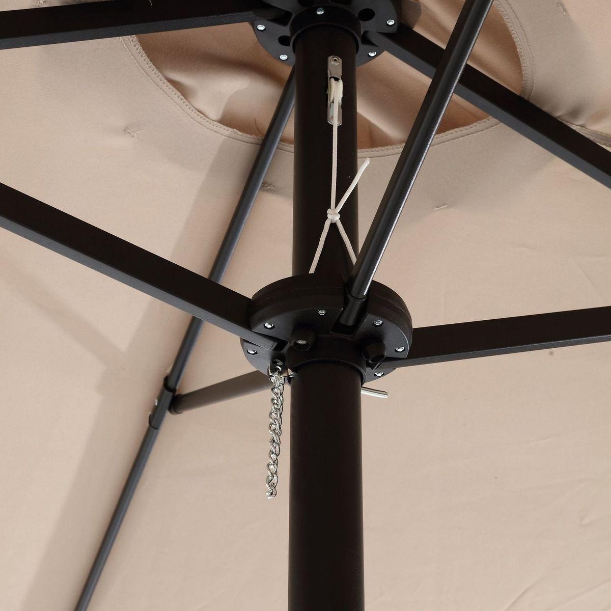 This market umbrella has a crank mechanism, you can easily open and close the umbrella in a few seconds by rotating the crank handle. No base are included and lightweight.