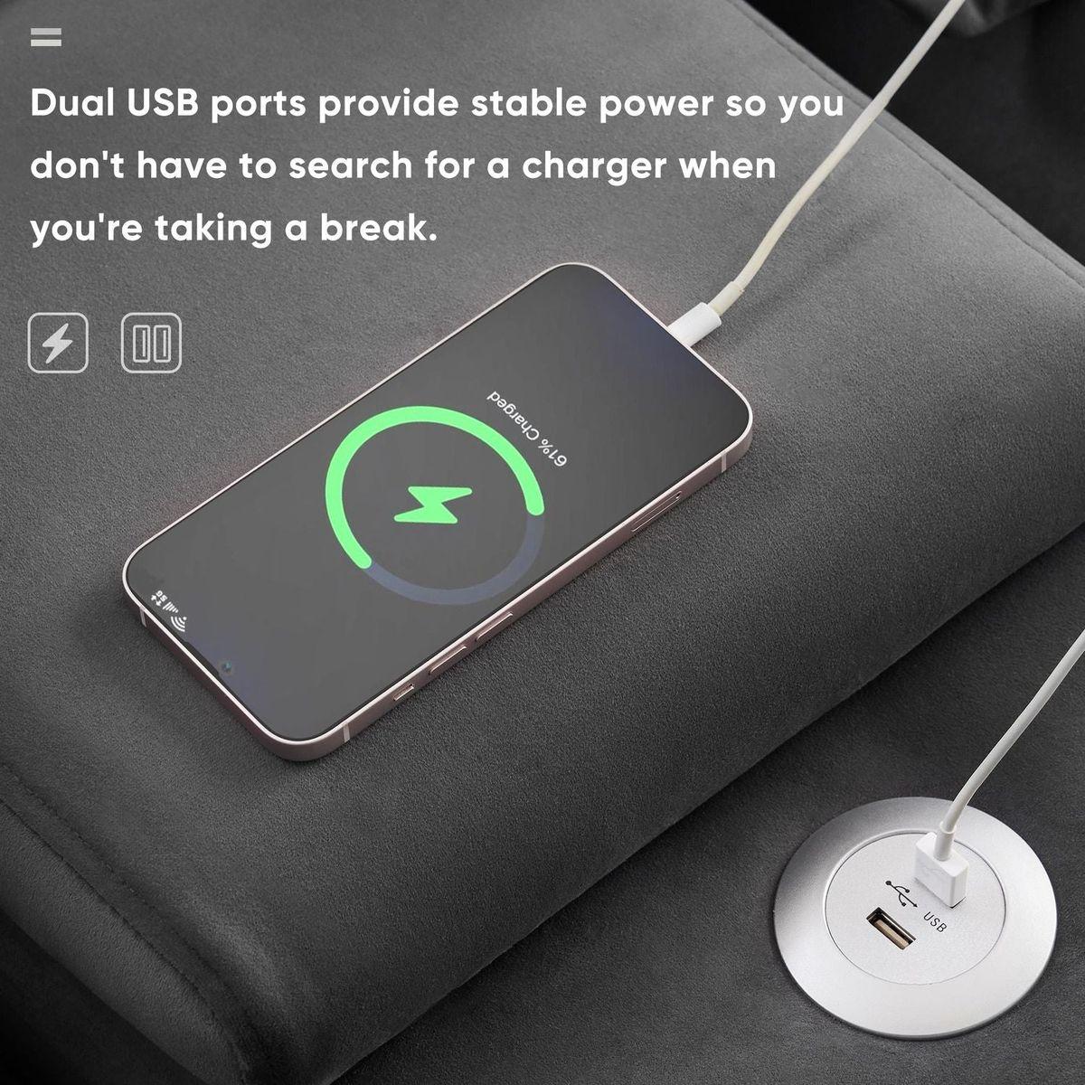 The convenient storage space, cup holders, and USB ports make it ideal for movie nights, gatherings, and everyday lounging. It's the perfect combination of relaxation and functionality.