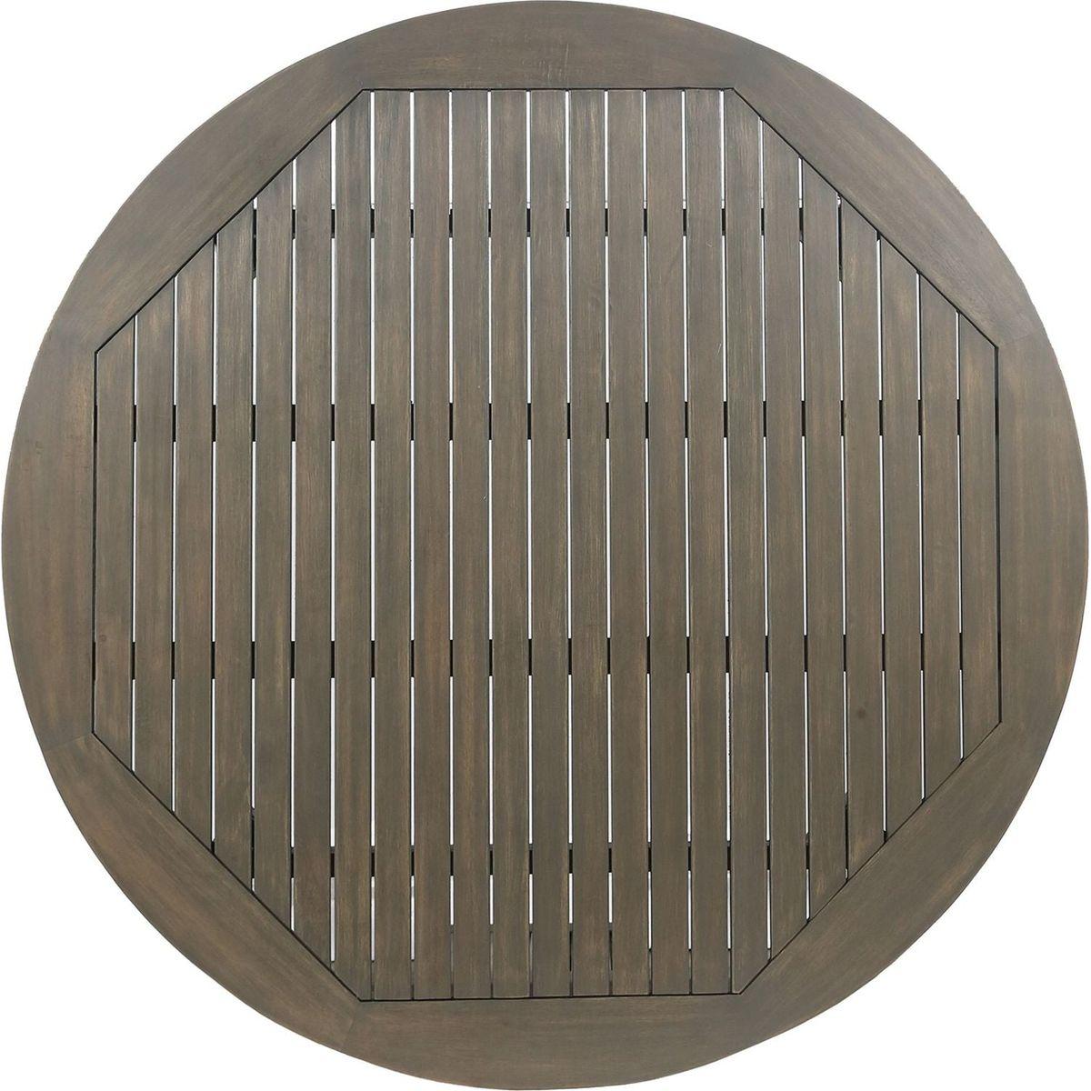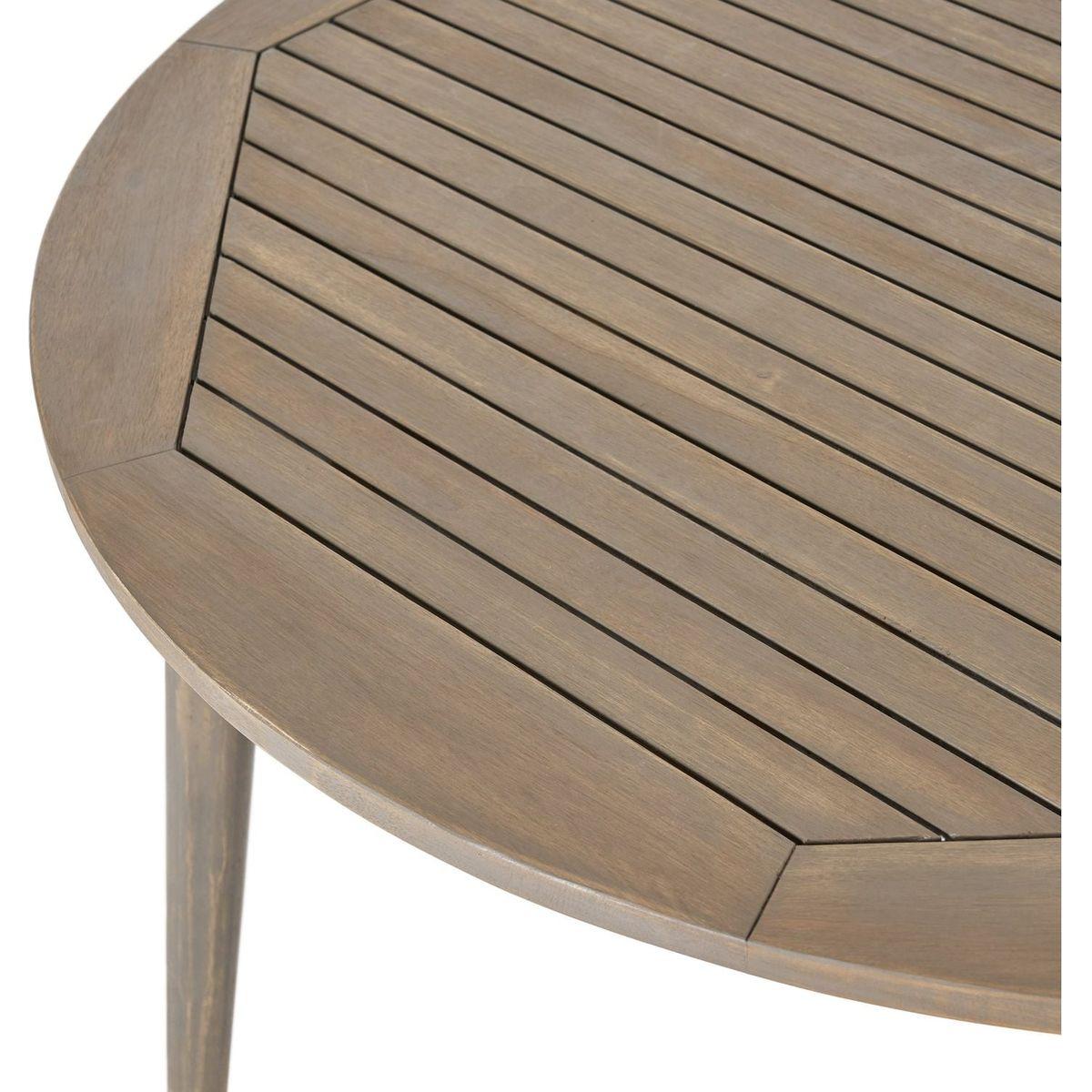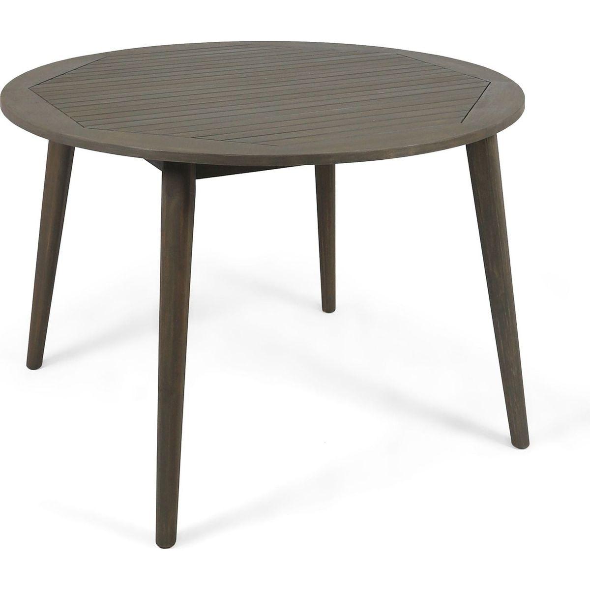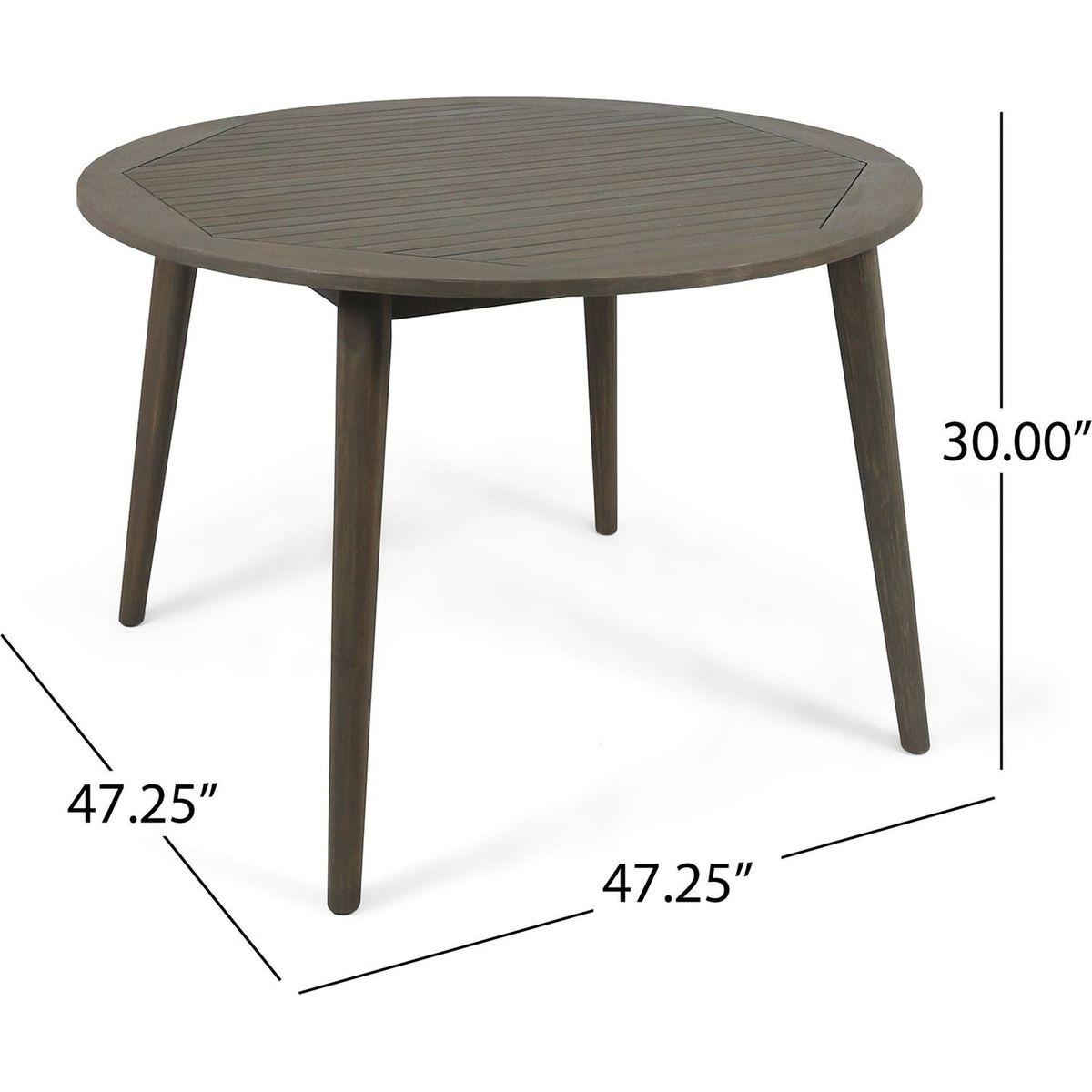 - Includes: One (1) Table. Material: Acacia Wood. Finish: Gray