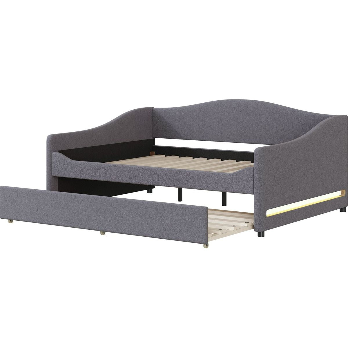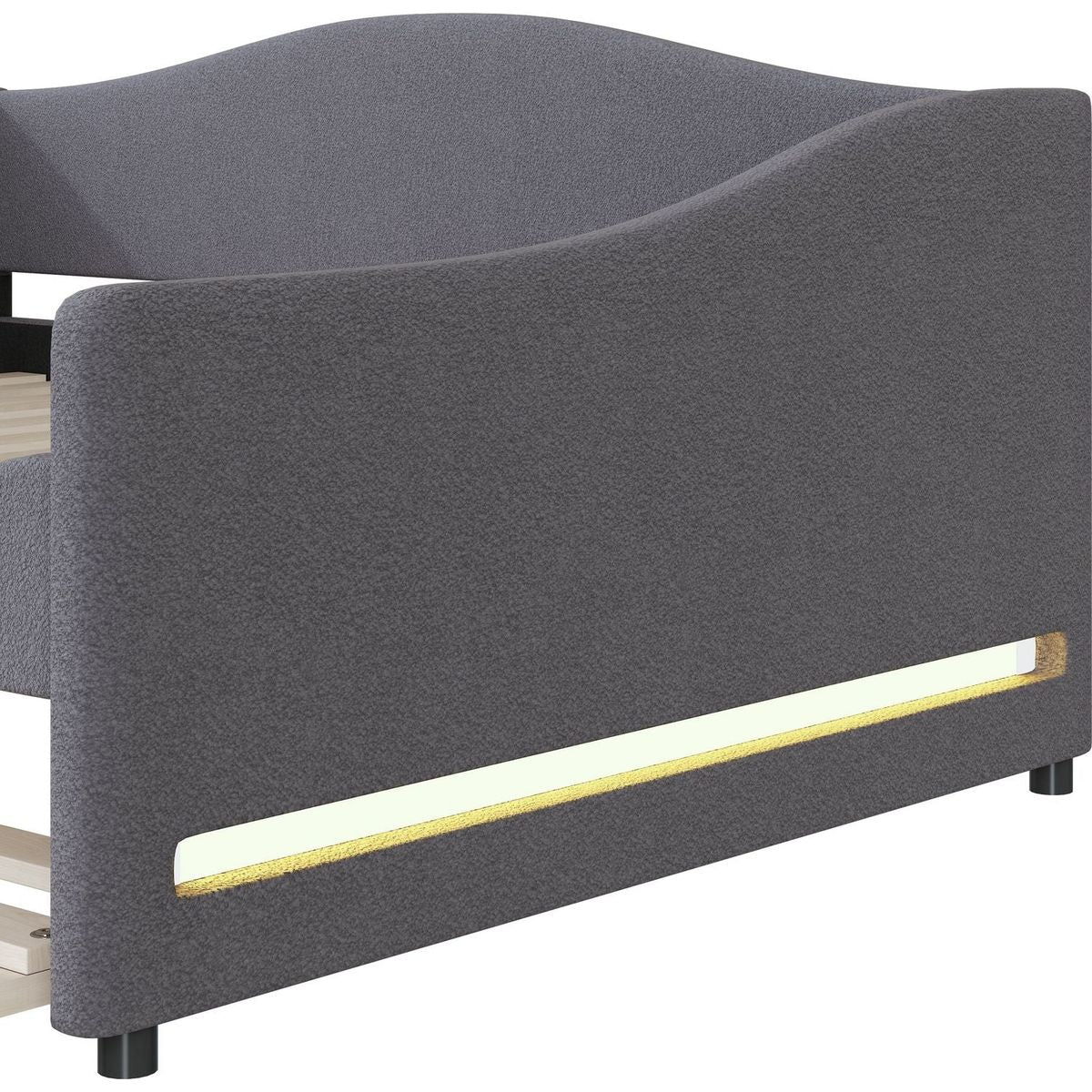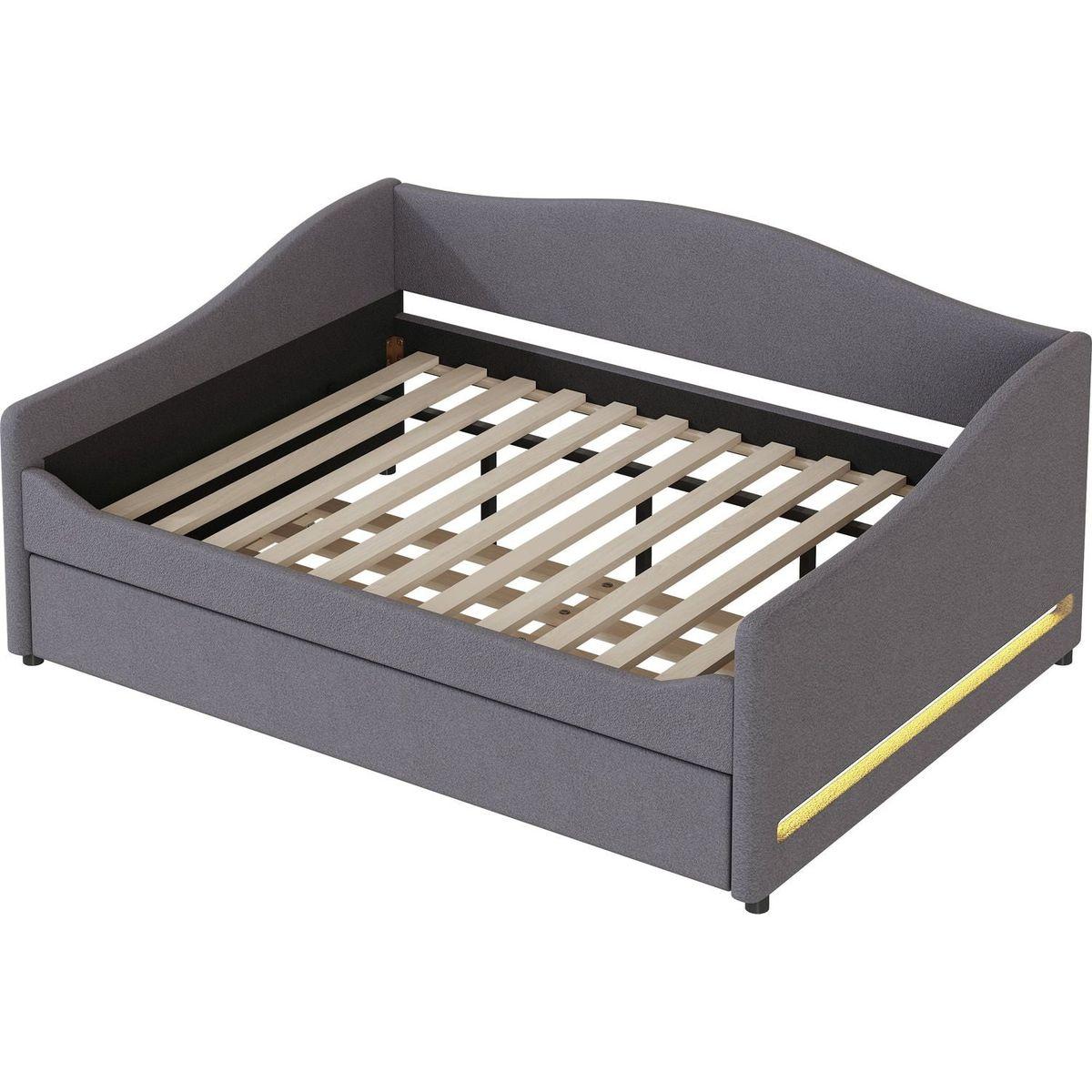Teddy Fleece Full Size Upholstered Daybed with Light and Trundle, Gray