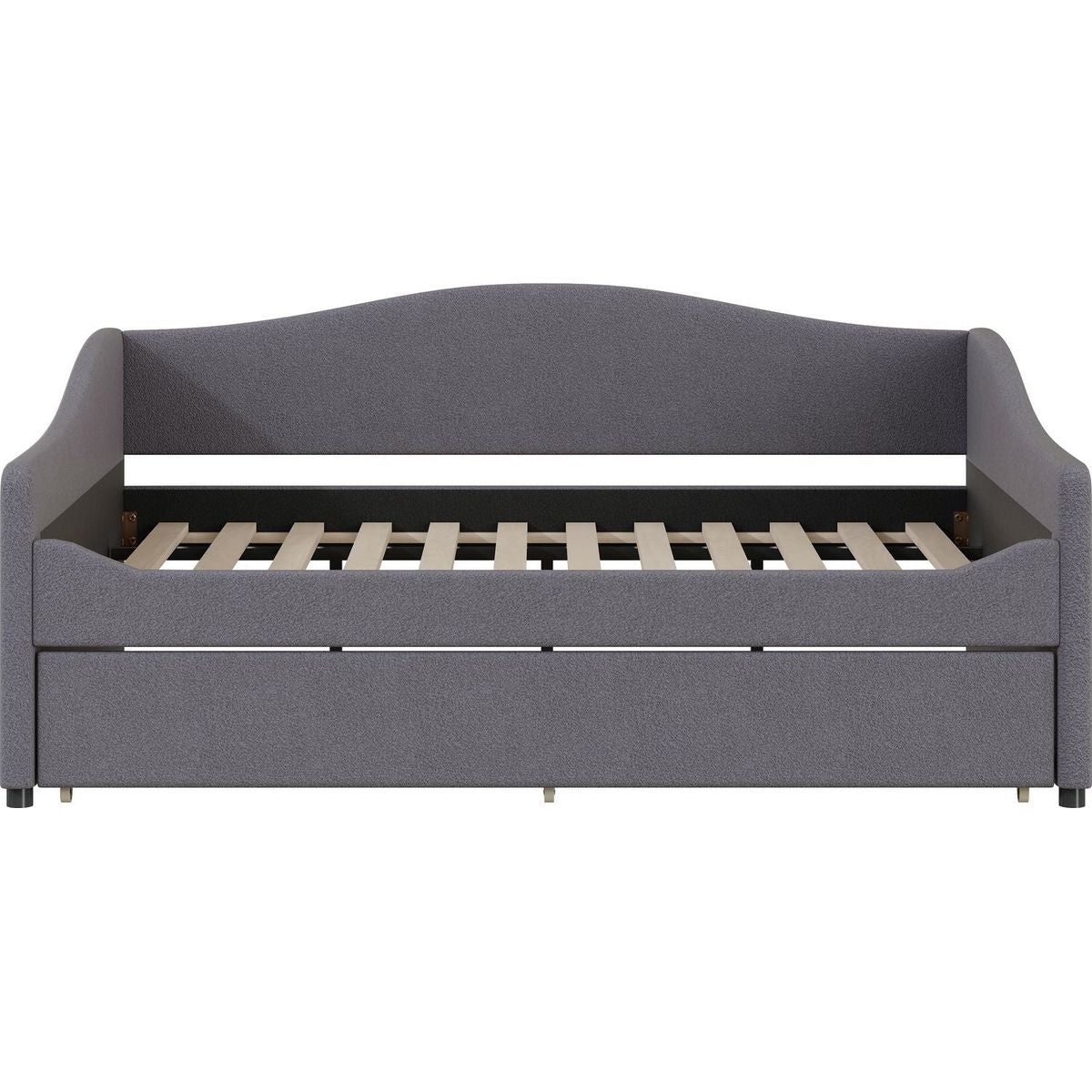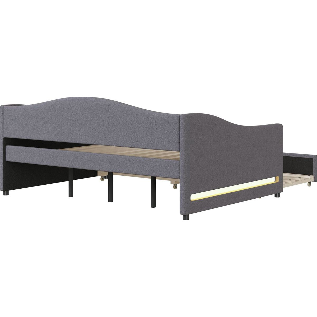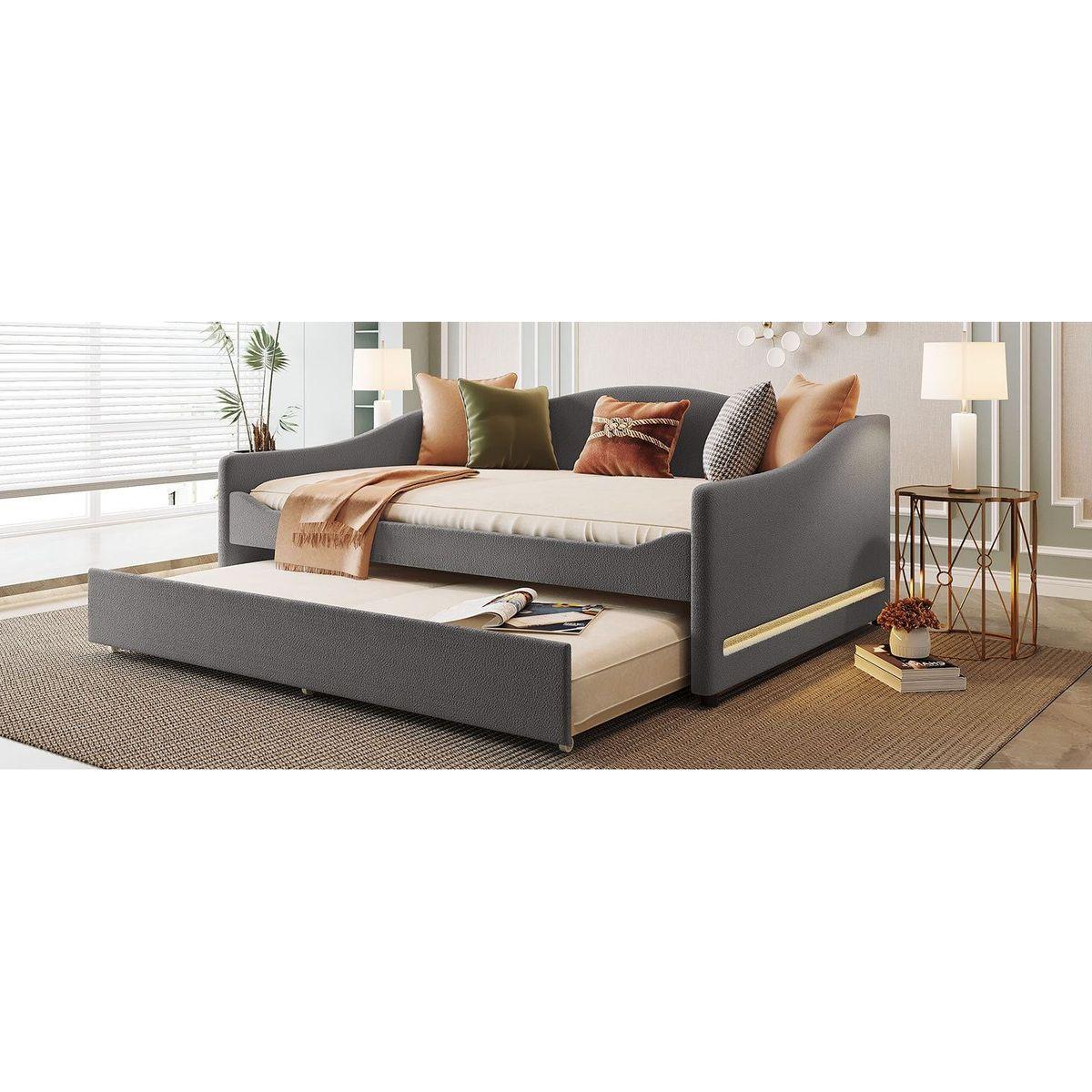 Teddy Fleece Full Size Upholstered Daybed with Light and Trundle, Gray