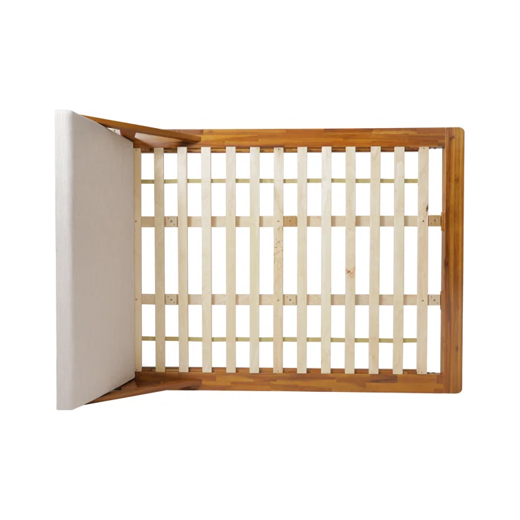 - Give your bedroom a classic yet timeless upgrade by mixing plush fabric and sleek acacia wood. Beautifully designed with clean lines, the upholstered headboard brings soft sophistication to this thoughtfully constructed piece. Its cozy allure will have you wishing you were still in bed, while its striking appearance is enough to elevate any setup, literally.