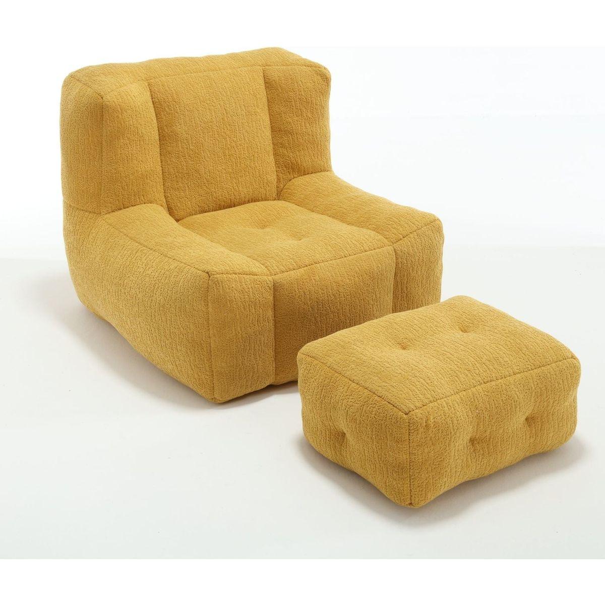 Fluffy bean bag chair, comfortable bean bag for adults and children, super soft lazy sofa chair with memory foam and ottoman, indoor modern focus bean bag chair for living room, bedroom, apartment