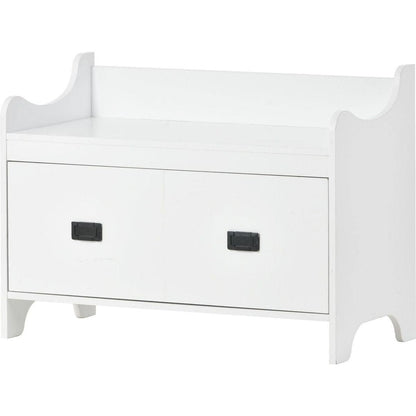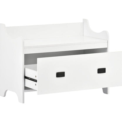 Modern Style 4-in-1 Multiple Functions Hallway Coat Rack with Seven Metal Black Hooks, Entryway Bench Hall Tree with Ample Storage Drawer, White
