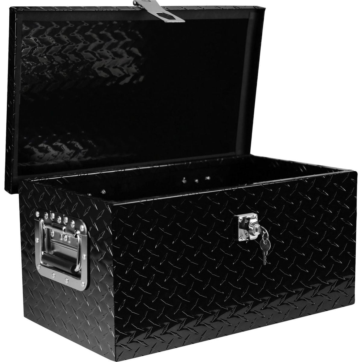 20 Inch Black Aluminum Tool long Box Tread Flat box for Truck Car Outdoor Trailer Pickup Underbody RV ATV Storage Tools Organizer with Lock Side Handle and Keys (20.1"x11.8"x9.3")