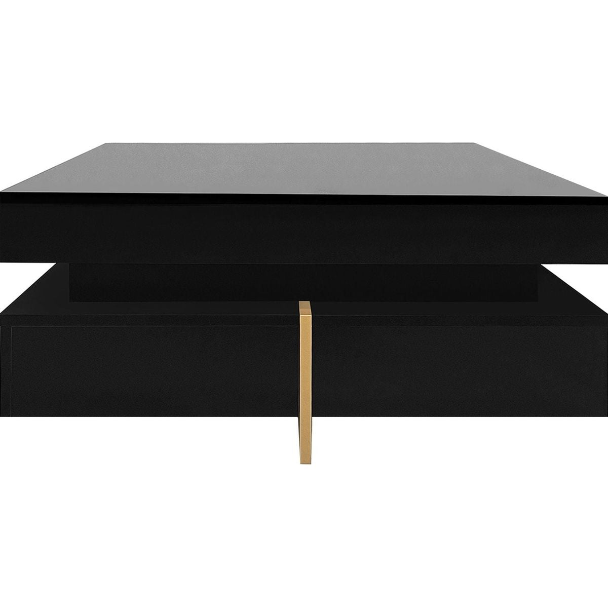 Modern High Gloss Coffee Table with 4 Drawers, Multi-Storage Square Cocktail Tea Table with Wood Grain Legs, Center Table for Living Room, 31.5"x31.5", Black