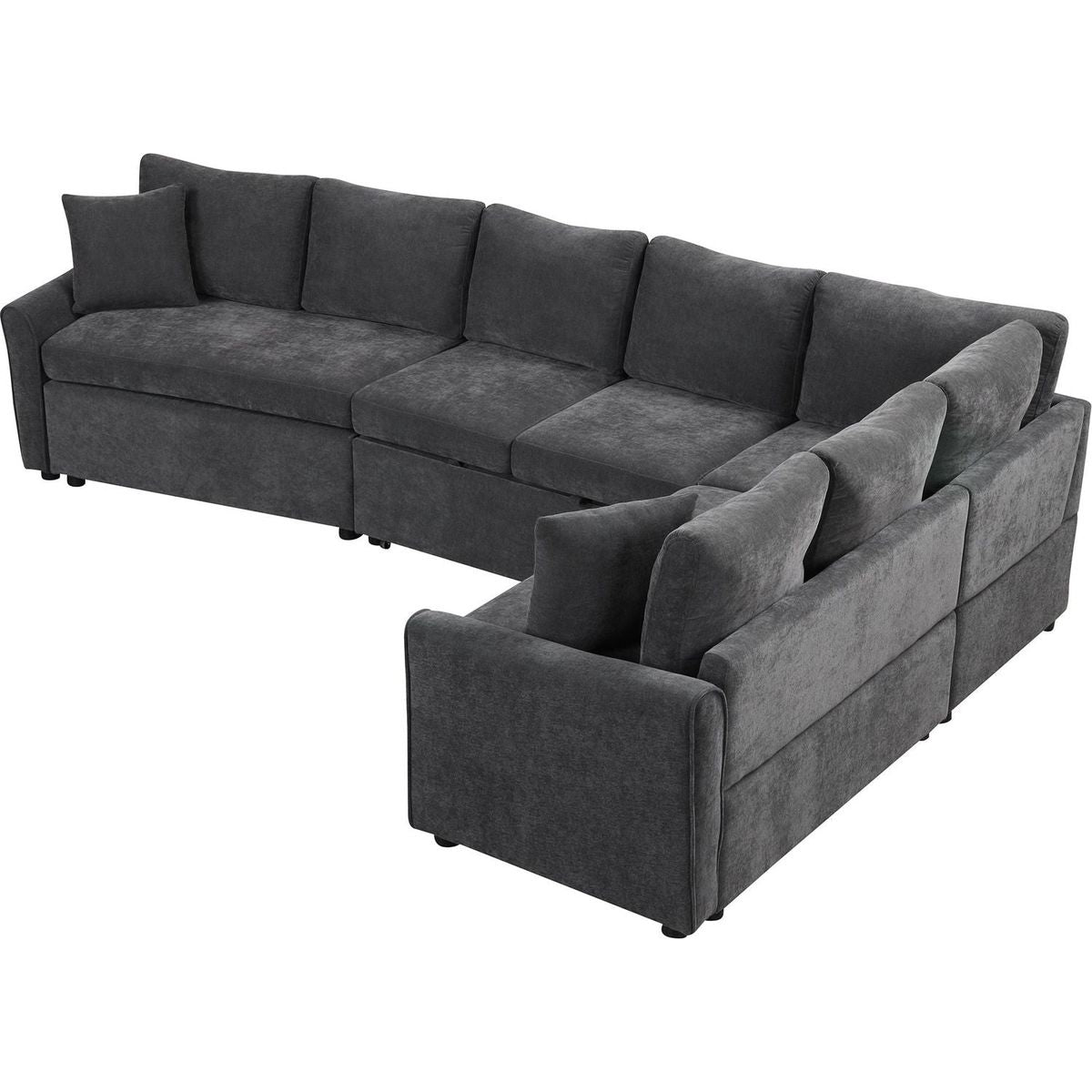 | Overall Dimension | Overall:124.8"D x 78.3"W x34.6"H Left Loveseat :49.6"D x 29.1"W x34.6"H Middle Loveseat (with Sofa Bed):46.5"D x 29.1"W x34.6"H Corner Sofa:29.1"D x28.7"W x34.6"H Lounge:49.6"D x 29.1"W x34.6"H Pillow:14.5"x 14.5" Pillow Thickness:5.5" Backrest Thickness:5.5" Cushion Thickness:5.5" |