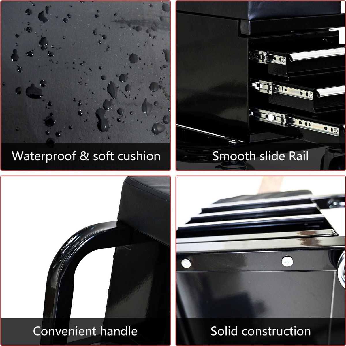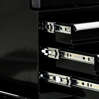 - Tools can be stored in the padded, three-tier drawers, each holding up to 25 pounds, which slide gently and silky smooth on ball-bearing slides.