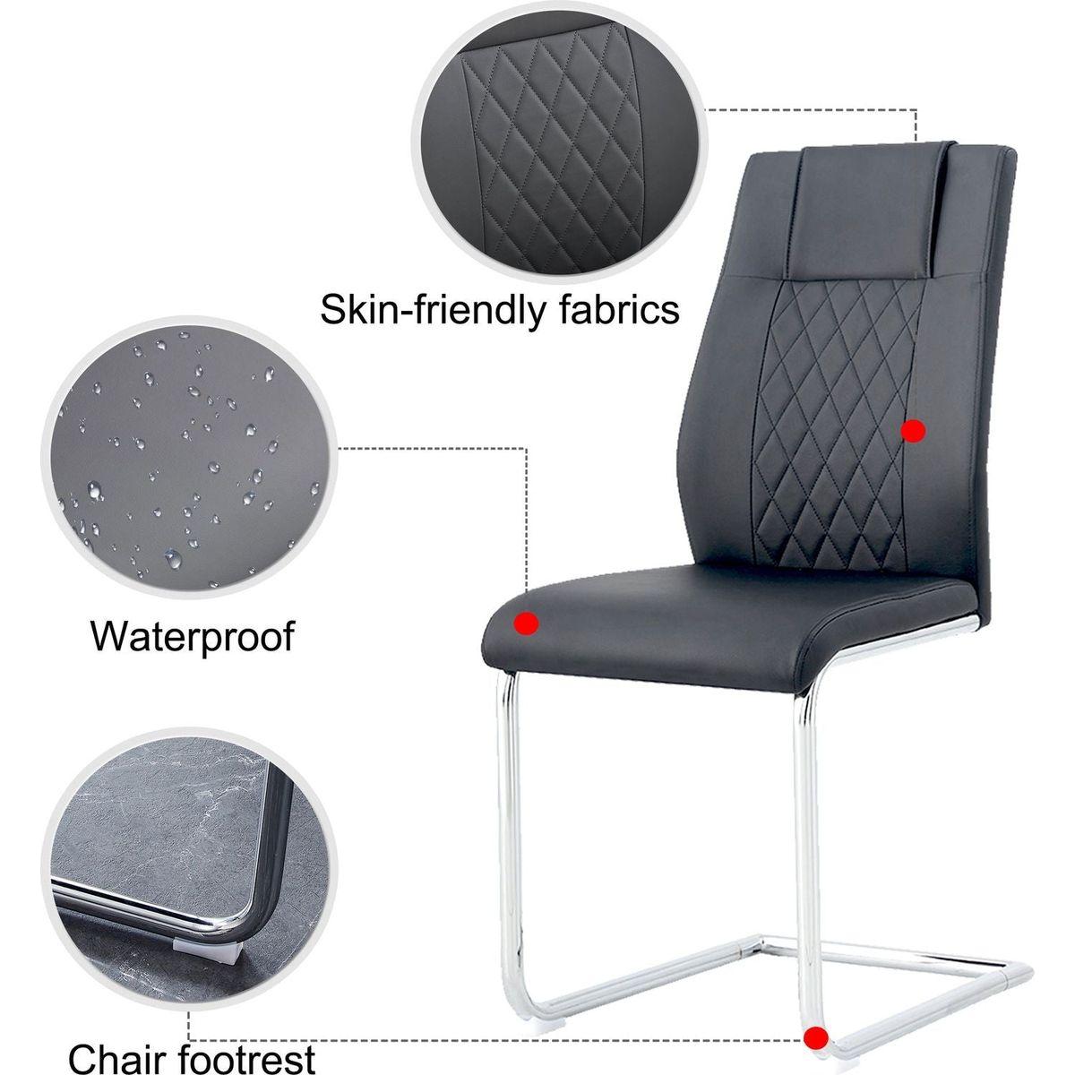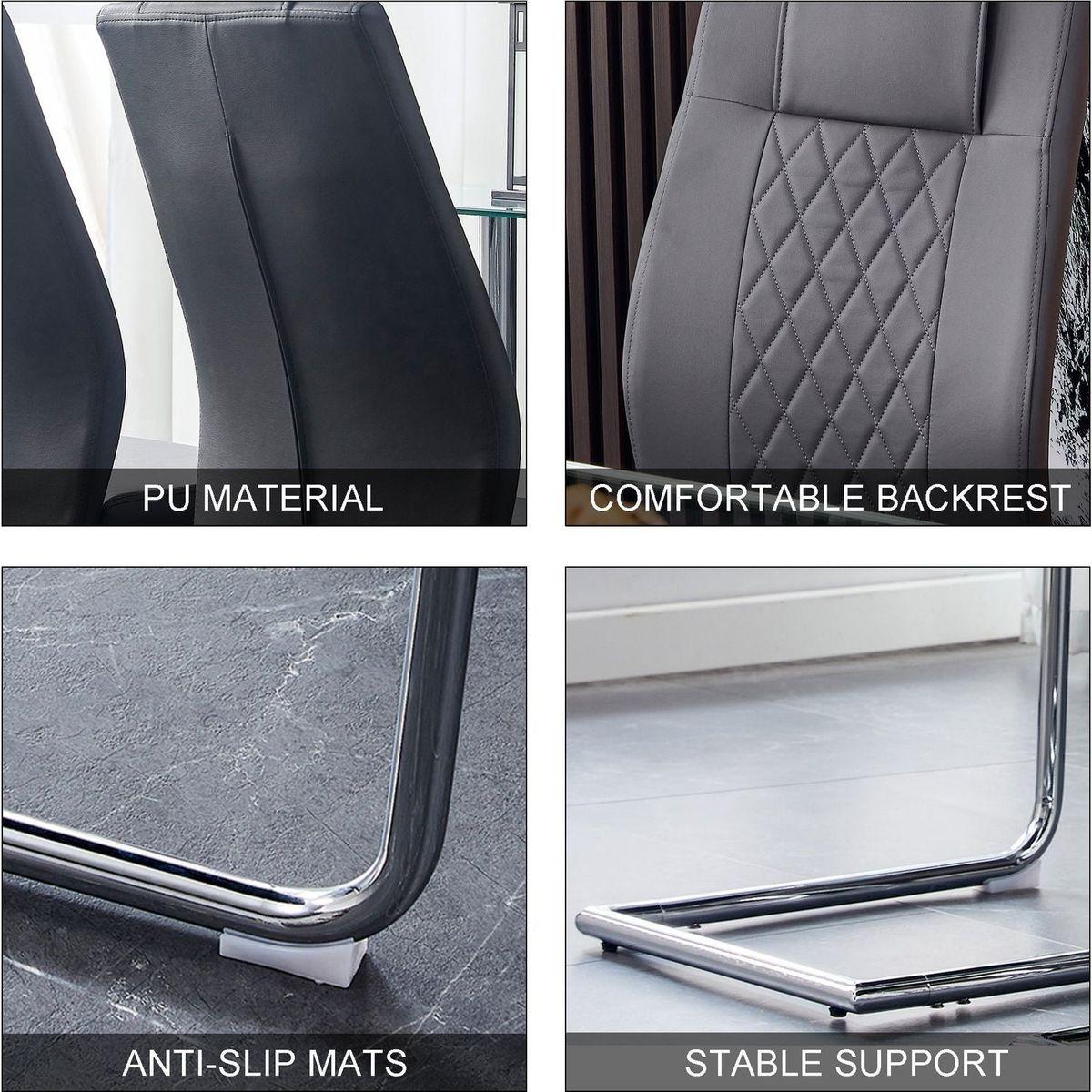 Modern Dining Chairs with Faux Leather Padded Seat Dining Living Room Chairs Upholstered Chair with Metal Legs Design for Kitchen, Living, Bedroom, Dining Room Side Chairs Set of 4 (Grey+PU)