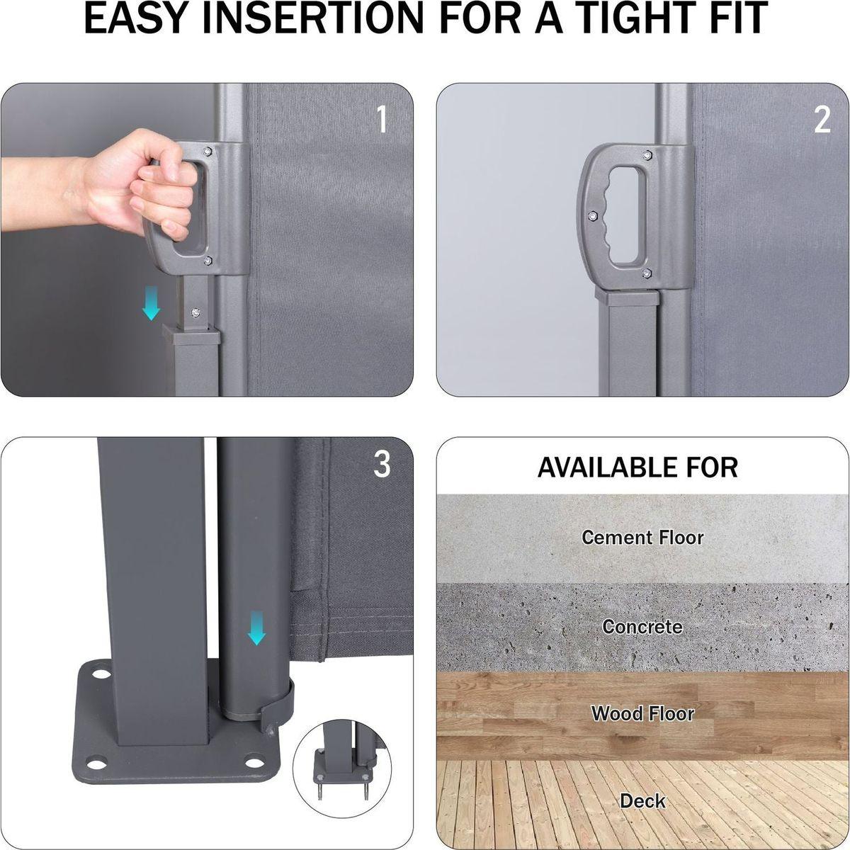 Have you ever felt uneasy about being exposed to strangers while relaxing in your yard? Don't you wanna a more private space in the yard? This retractable side awning is a rather cost-efficient yet efficient choice. It features sturdiness, durability, UV resistance and tear resistance. Not only can create a comfortable private space, but also can shade the sun and wind, it's perfect for home use!