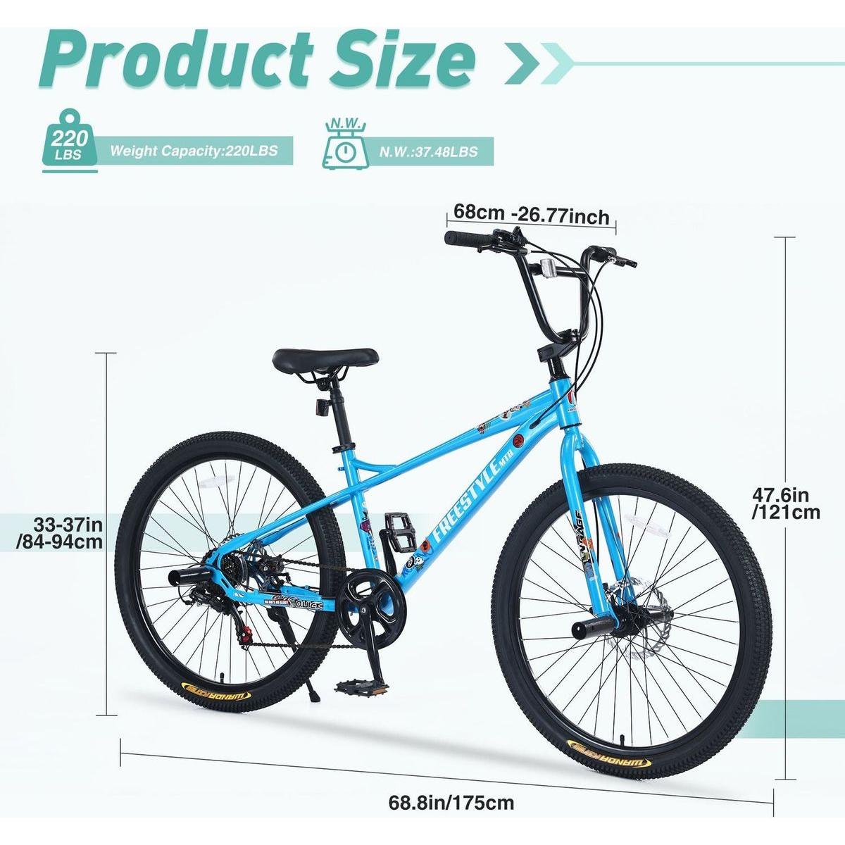 Freestyle Kids Bike Double Disc Brakes 26 Inch Children's Bicycle for Boys Girls Age 12+ Years