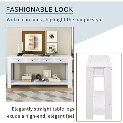 Console Table/Sofa Table with Storage Drawers and Bottom Shelf for Entryway Hallway(Antique White)