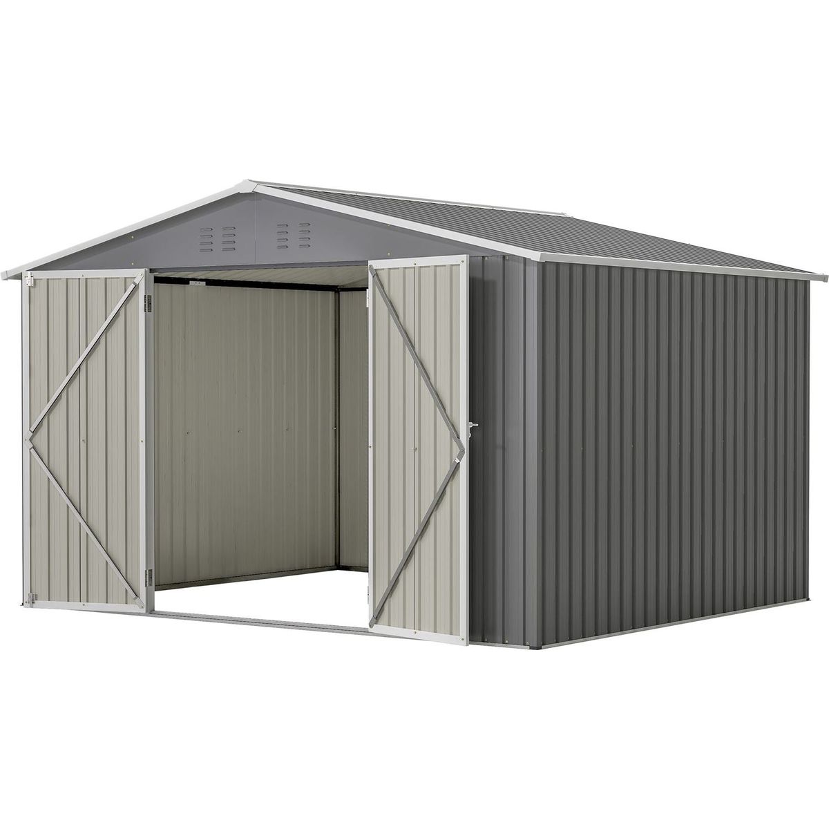 10X8 FT Outdoor Storage Shed, All Weather Metal Sheds withLockable Doors, Tool Shed for Garden, Patio, Backyard, Lawn, Grey