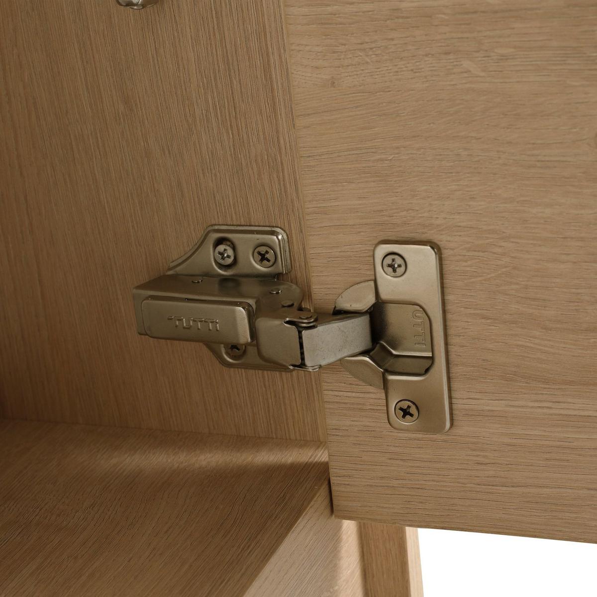 【Small Freestanding Vanity】The vanity is manufactured with plain light oak plywood and black knobs, making It durable and steady. The bathroom cabinet has its own adjustable shelves inside, providing a lot of extra space for the cabinet.