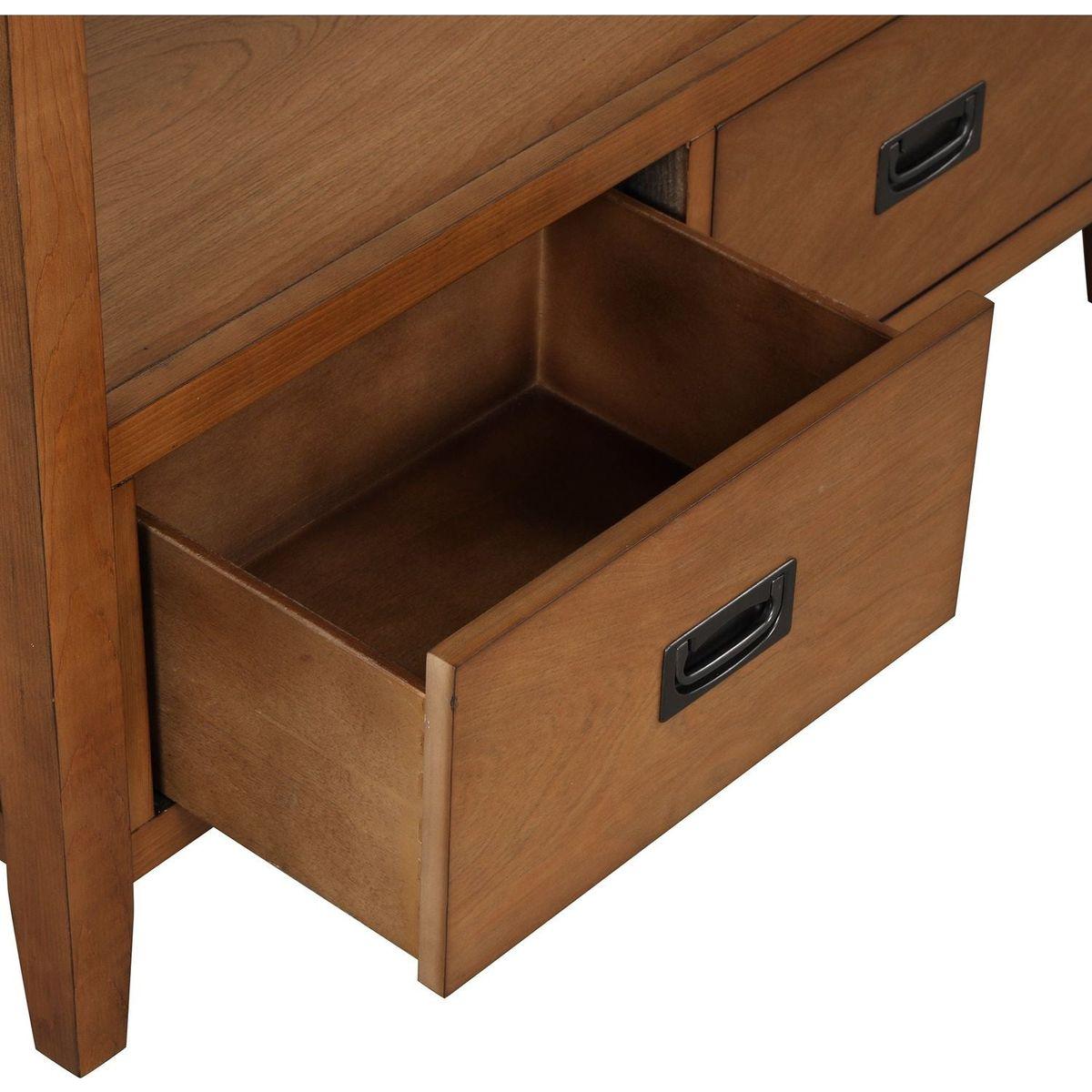 · Simple and Classic Style】- In a simple and classic style, this side table brings vintage atmosphere to your living area. All surfaces of the entryway table is coated with high quality painting, and the table top is ised. Meanwhile, there are two kinds of handles for the drawers. The top drawers feature with vintage carved round antimon handles, while the bottom drawers feature modern hidden antimon handles.