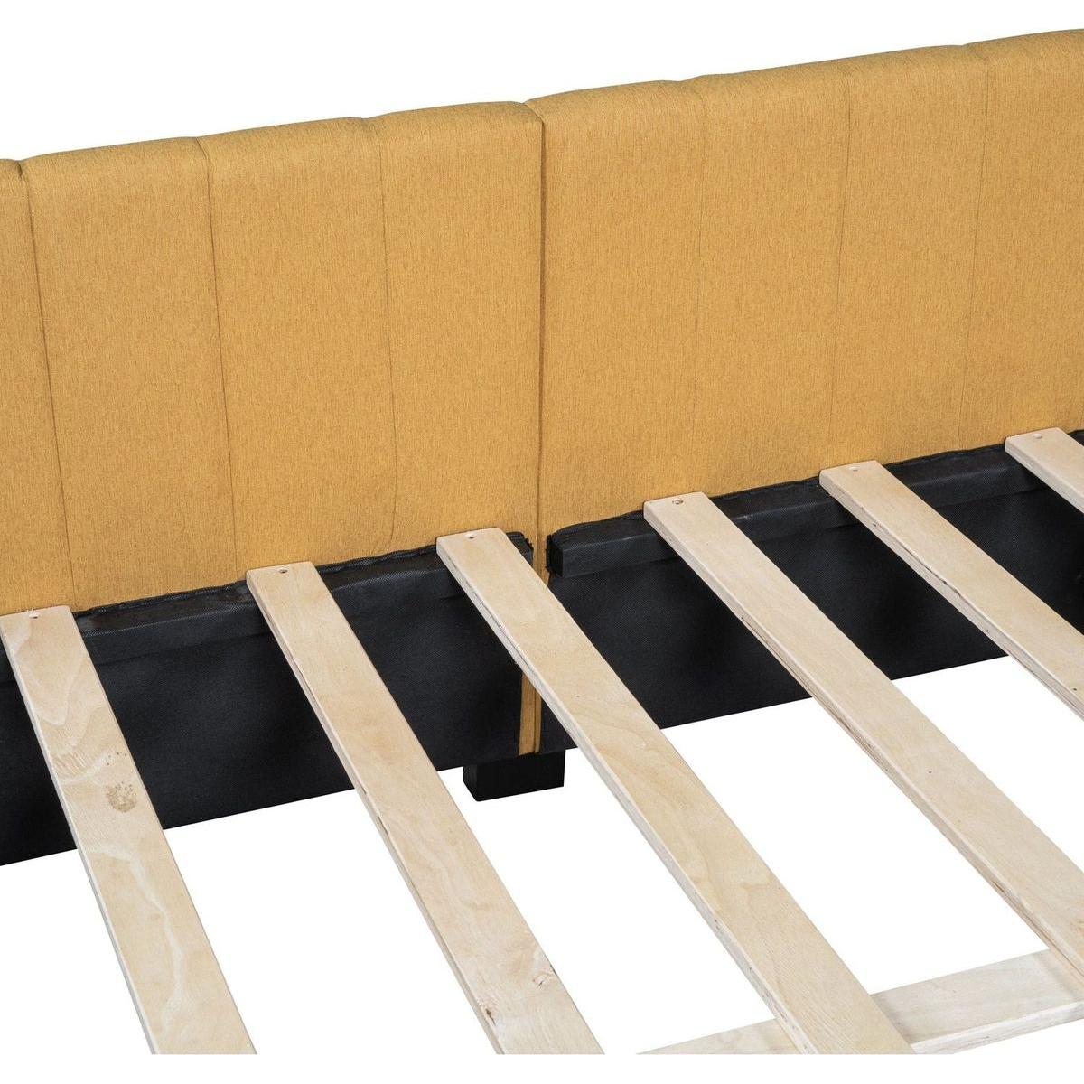 Full Size Upholstered Daybed with 2 Storage Drawers Sofa Bed Frame No Box Spring Needed, Linen Fabric (Yellow)