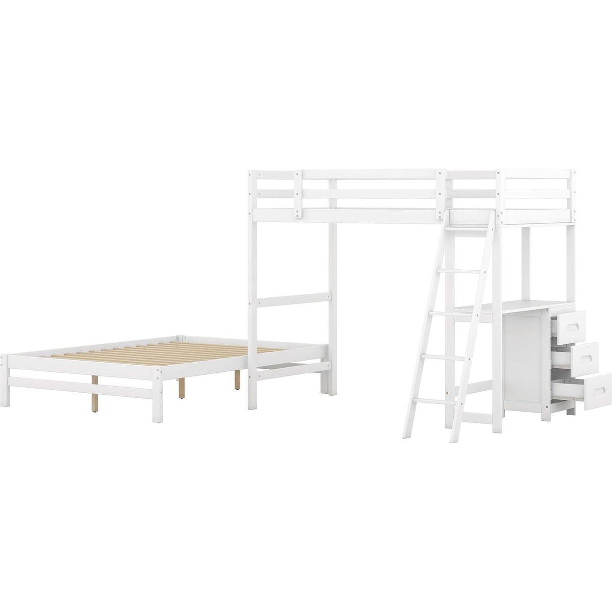 Twin over Full Bunk Bed with Built-in Desk and Three Drawers,White