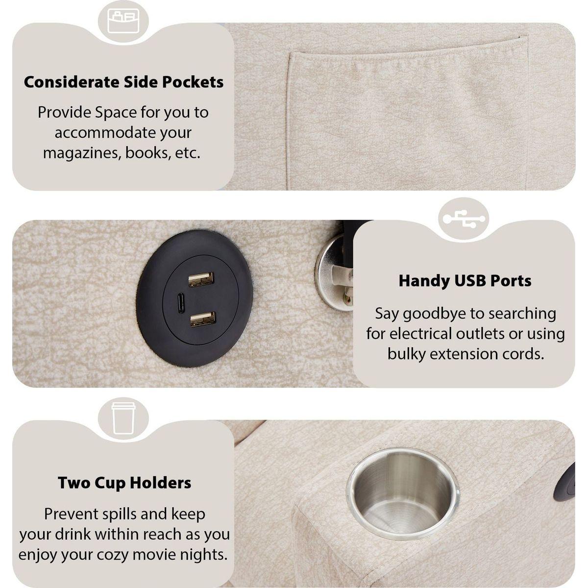 55.9" Convertible Sofa Bed Loveseat Sofa with Three USB Ports, Two Side Pockets, Two Cup Holders and 360Swivel Phone Holder for Living Room, Beige