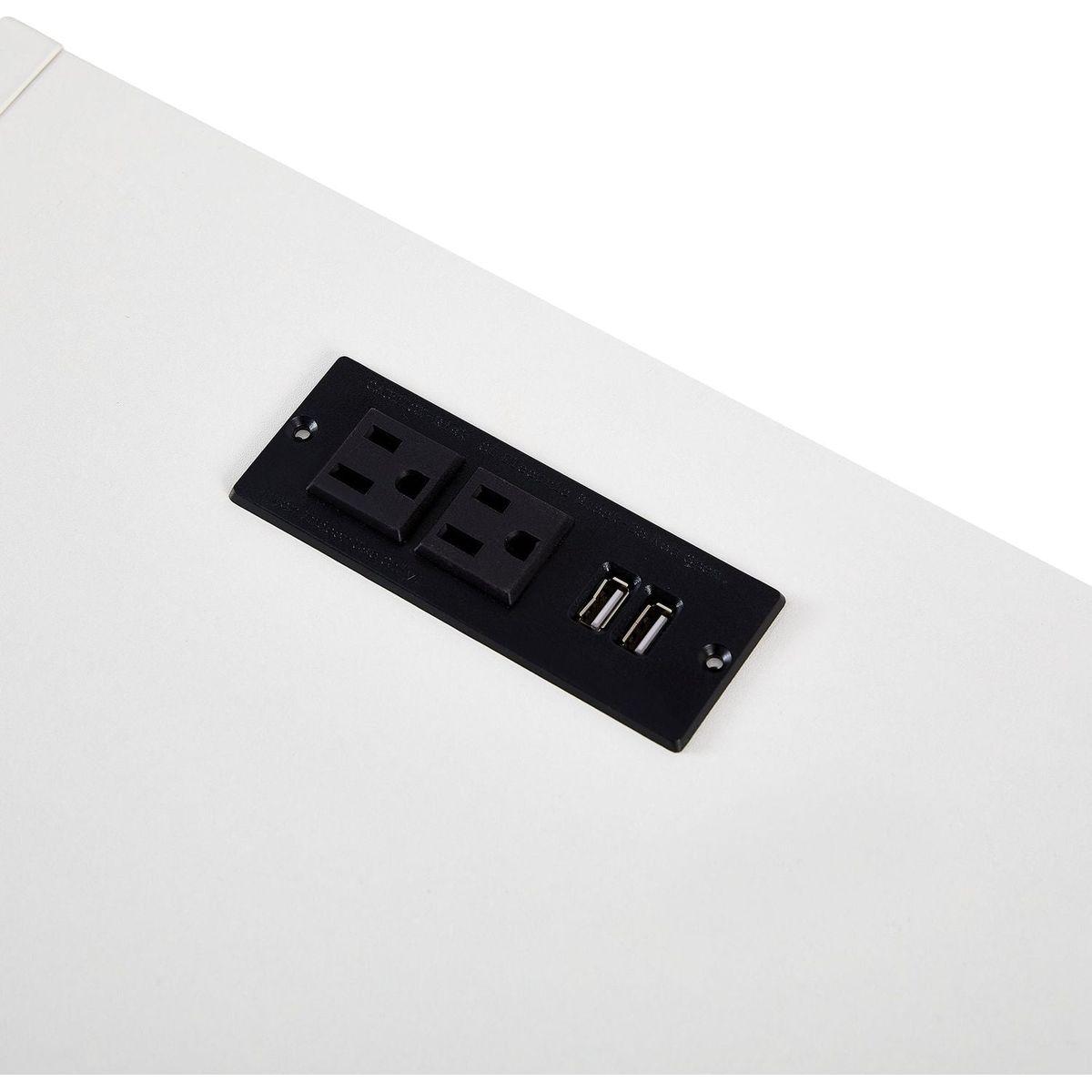Set of 2, 15.75" Rattan End table with Power Outlet & USB Ports, Modern nightstand with drawer and metal legs, side table for living room, bedroom,white