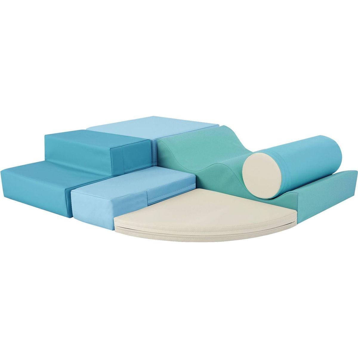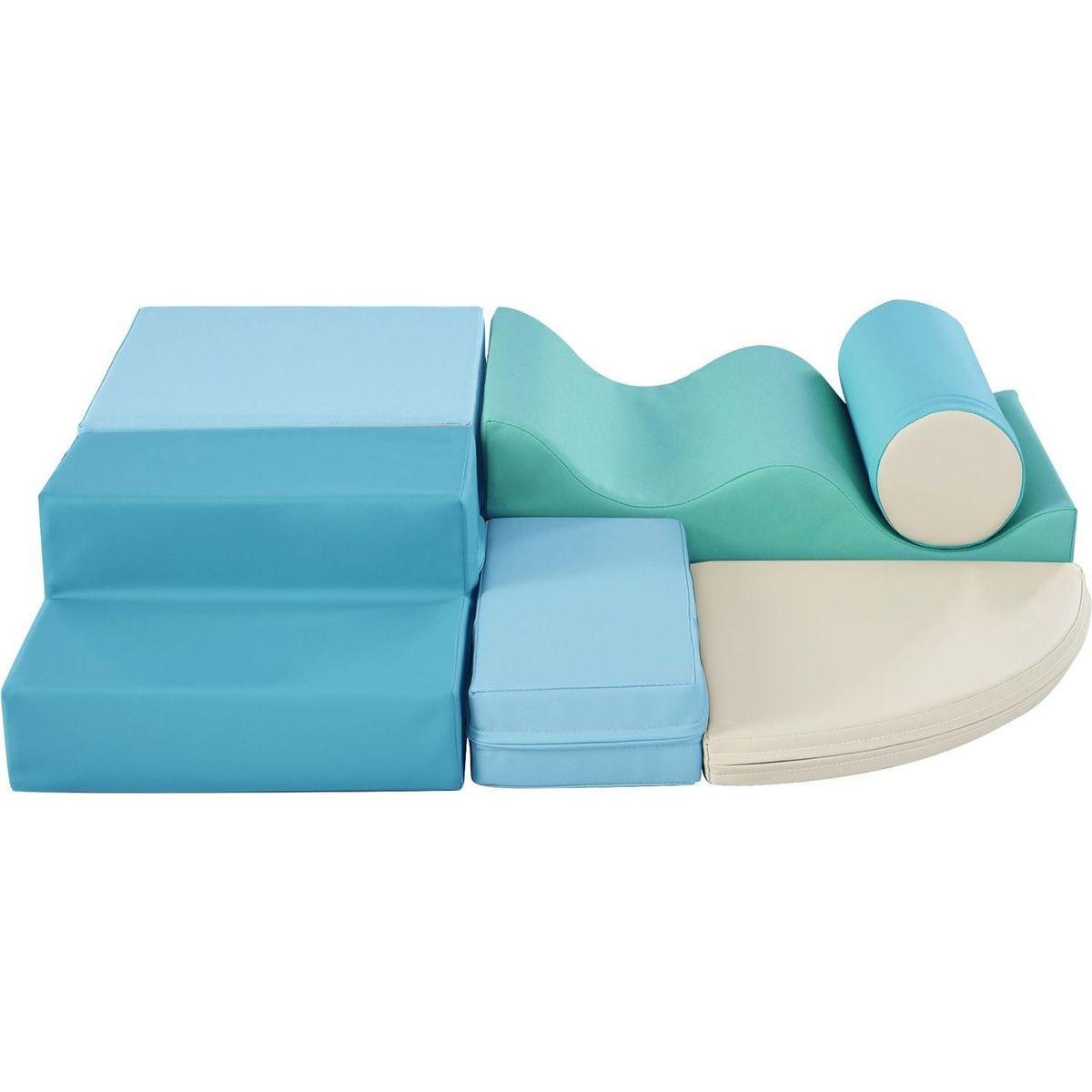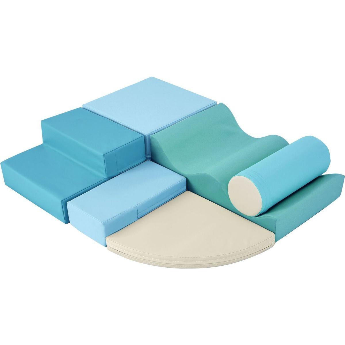 - This crawling toy set consists of a staircase, a square mat, a rectangular mat, a fan-shaped mat, a wavy climbing mat, and a cylinder.