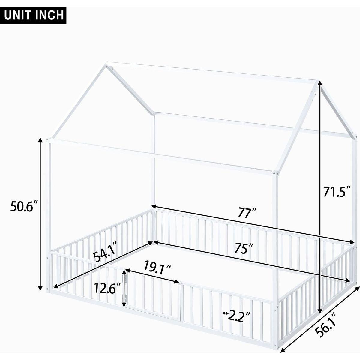- [Solid Construction] The house platform bed crafted from high-quality metal can last for long time use. The roof and fence are made from metal, ensuring strong stability and durability.
