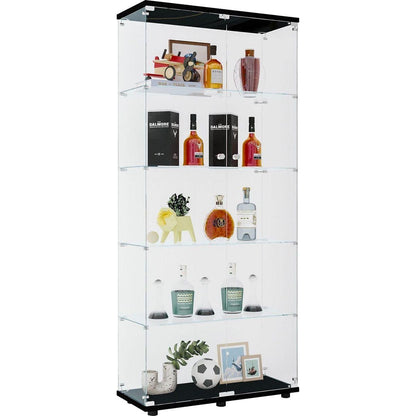Glass Display Cabinet with 5 Shelves Double Door, Curio Cabinets for Living Room, Bedroom, Office