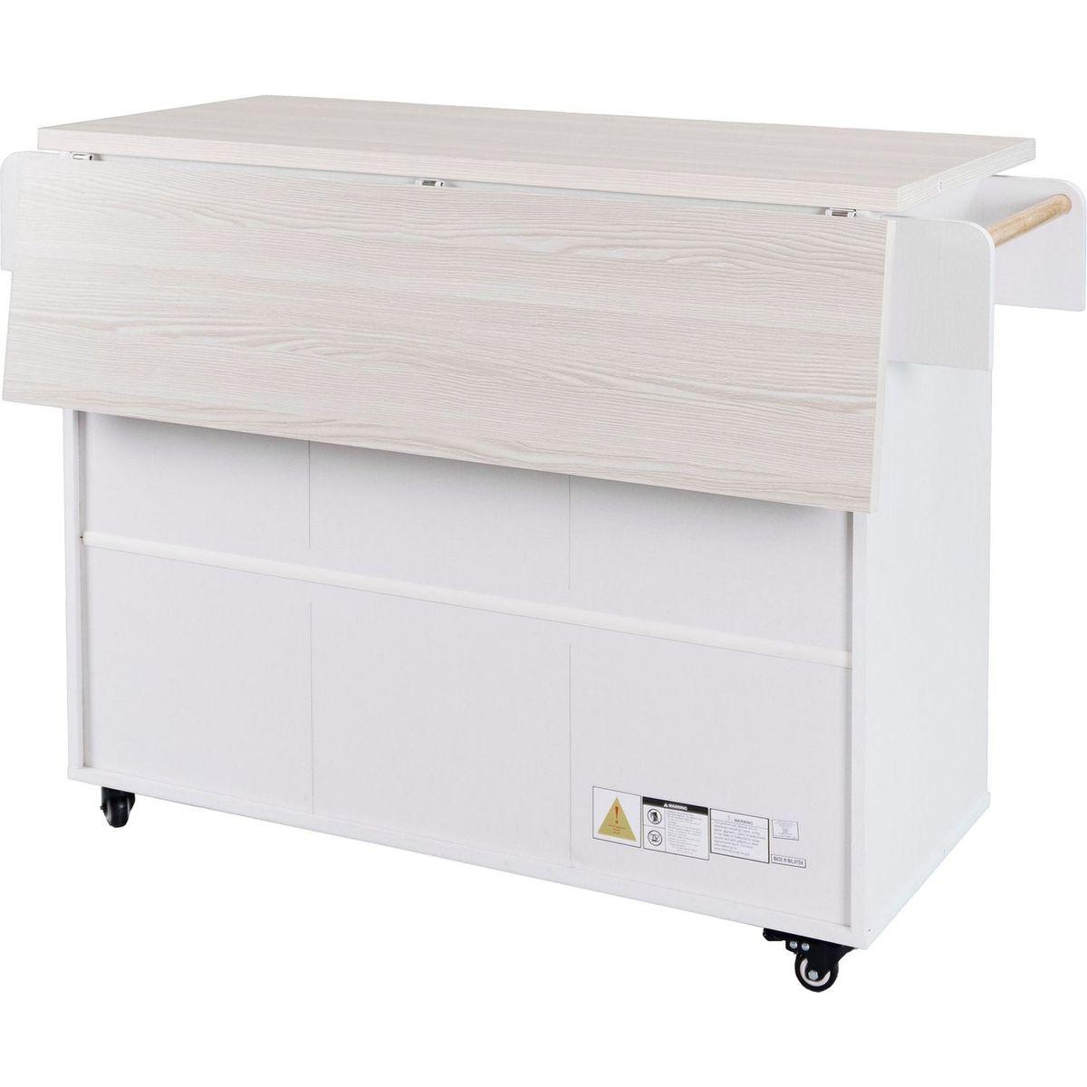 Our white kitchen island's collapsible drop leaf design with sturdy support makes it perfect for compact spaces,seamlessly transforming into a bar cart or mobile coffee center.