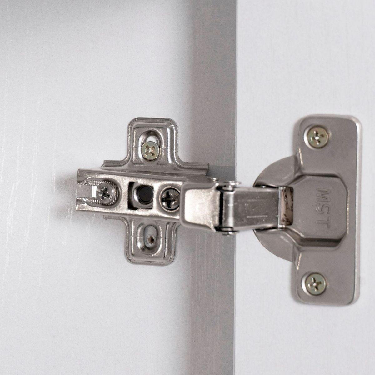 The anti-tip limiter on the trash can door keeps the door from tipping over.
