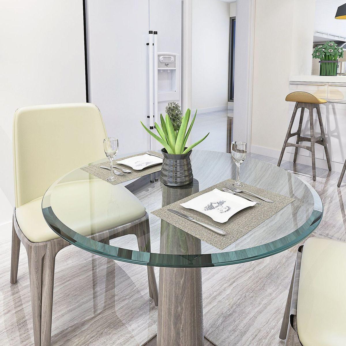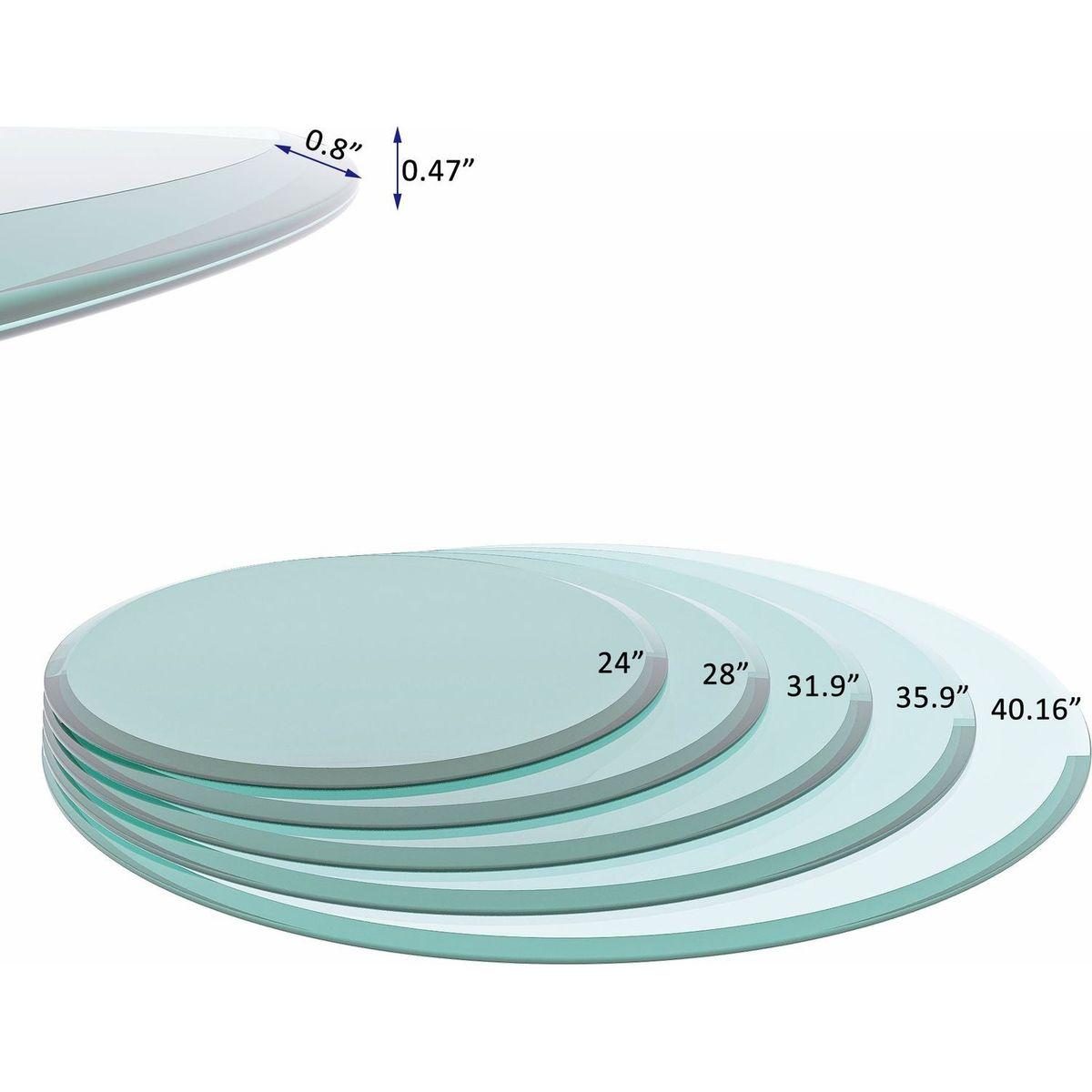 32" Inch Round Tempered Glass Table Top Clear Glass 1/2" Inch Thick Beveled Polished Edge