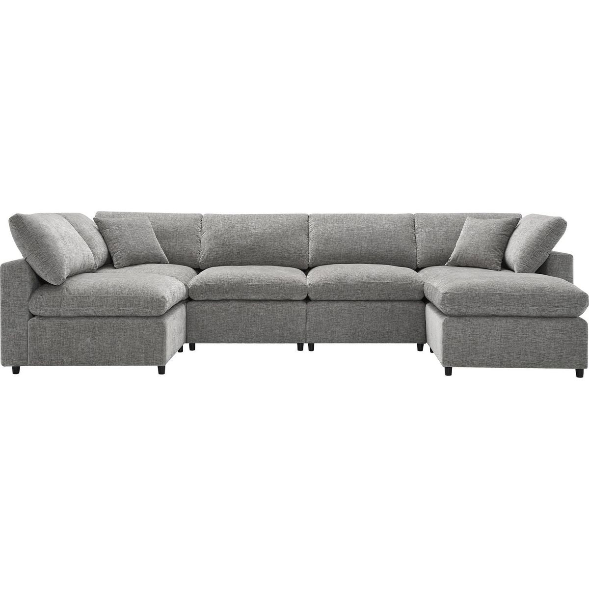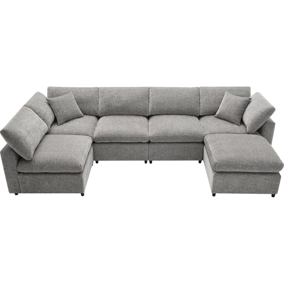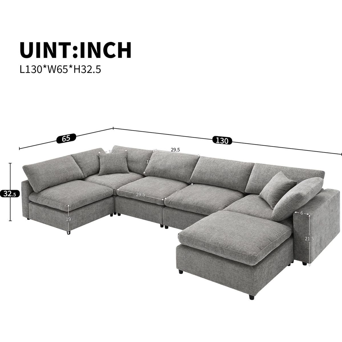 130x65" Modern Modular Cloud Sofa Bed, 6 Seat Chenille Sectional Couch Set with Ottoman,Free Combination,Convertible U Shaped Sleeper Sofa for Living Room, Apartment, 3 Colors