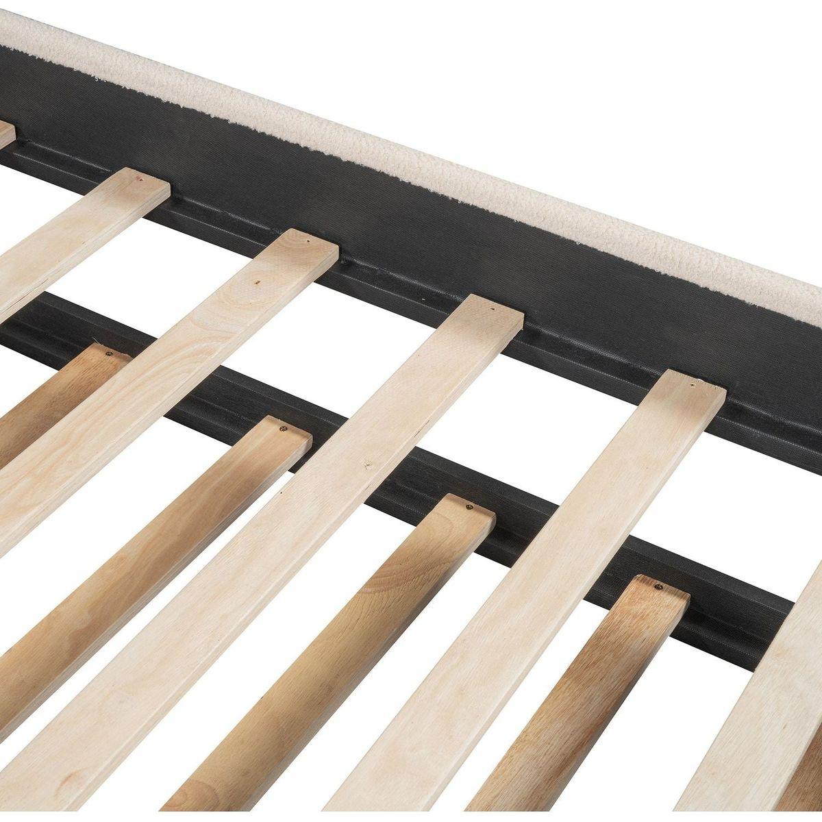 Teddy Fleece Twin Size Upholstered Platform Bed with Trundle, Beige