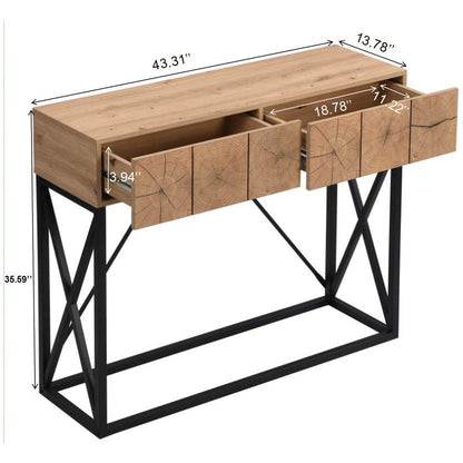 43.31" Luxury Wood Sofa Table, Industrial Console Table for Entryway, Hallway Tables with Two Drawers for Living Room