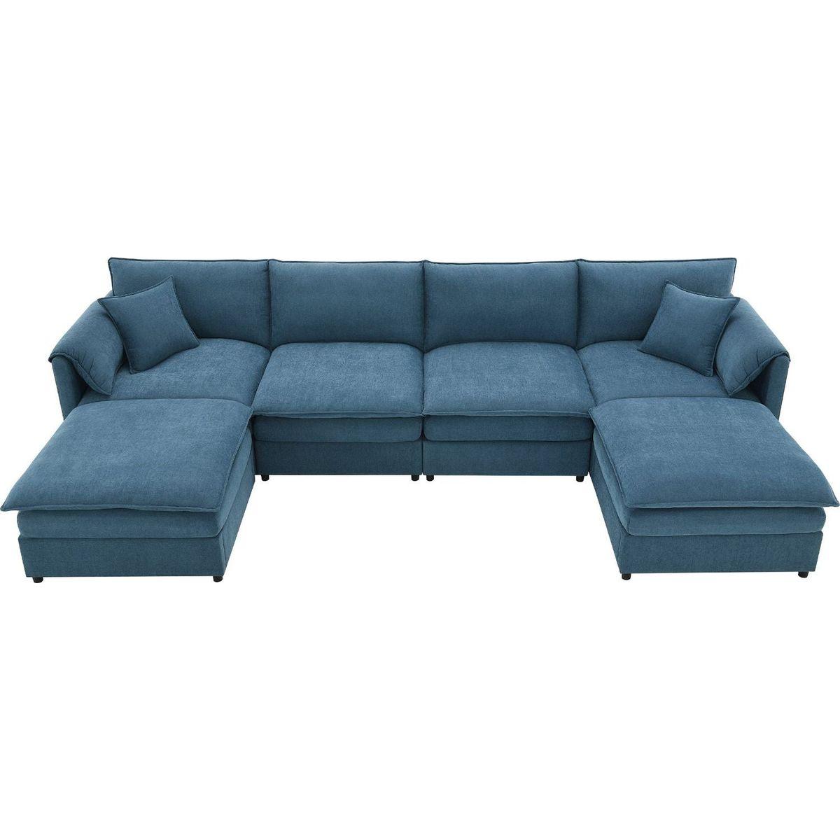 134x66" Chenille Modular Sectional Sofa,U Shaped Cloud Couch Set with Double Cushions, 6 Seat Sleeper Sofa Bed with Ottomans,Oversized Indoor Furniture for Living Room, 3 Colors