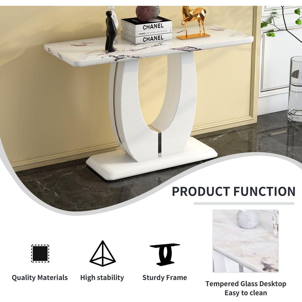Modern Simple Glossy White Rectangular Counter Bar Table 47.24" x 18.11" x 29.52" For Living Room Bedroom Bedside Entrance House Balcony Office Bathroom.