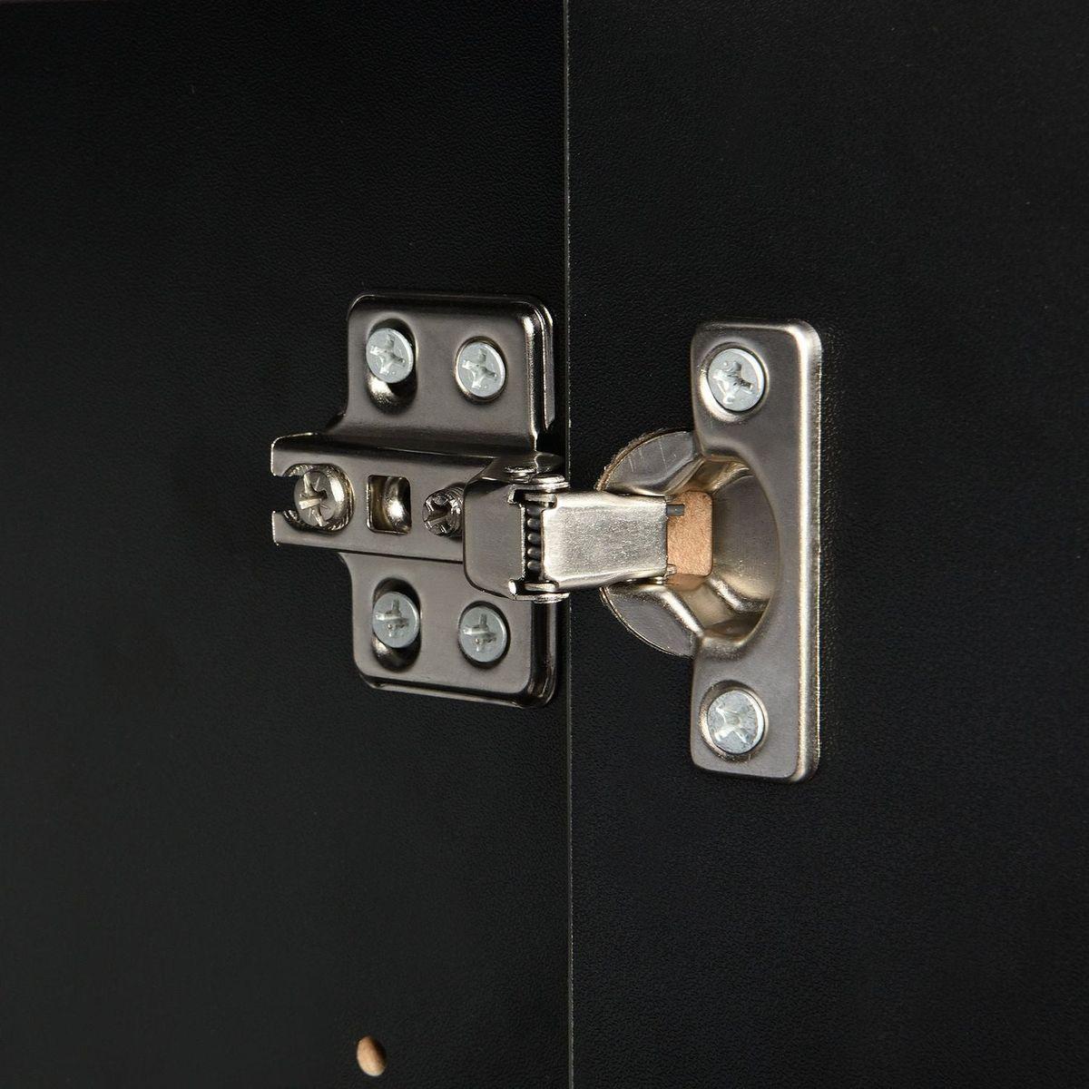 This storage cabinet features three layers of adjustable partitions, allowing you to customize the height to accommodate items of various sizes. Its drawer and doors are equipped with beveled handles, ensuring convenient access. Additionally, the rounded edge on the top provides added safety, minimizing the risk of bumps in your daily life.