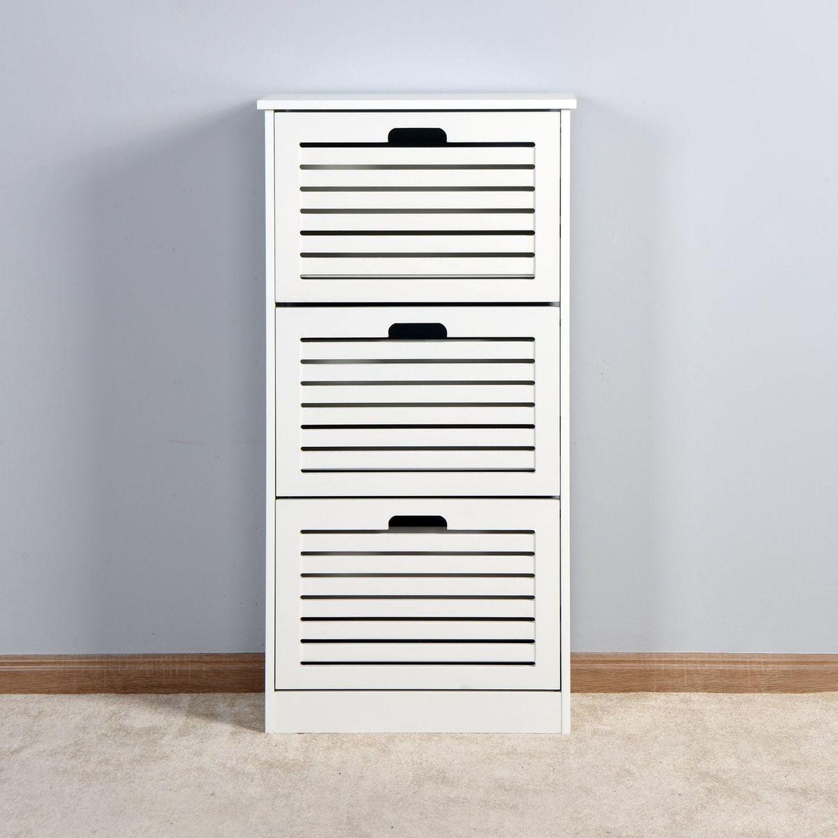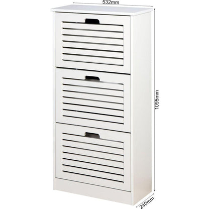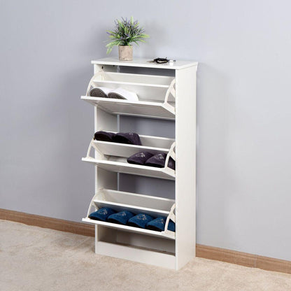 Wooden Shoe Cabinet for Entryway, White Shoe Storage Cabinet with 3 Flip Doors 20.94x9.45x43.11 inch