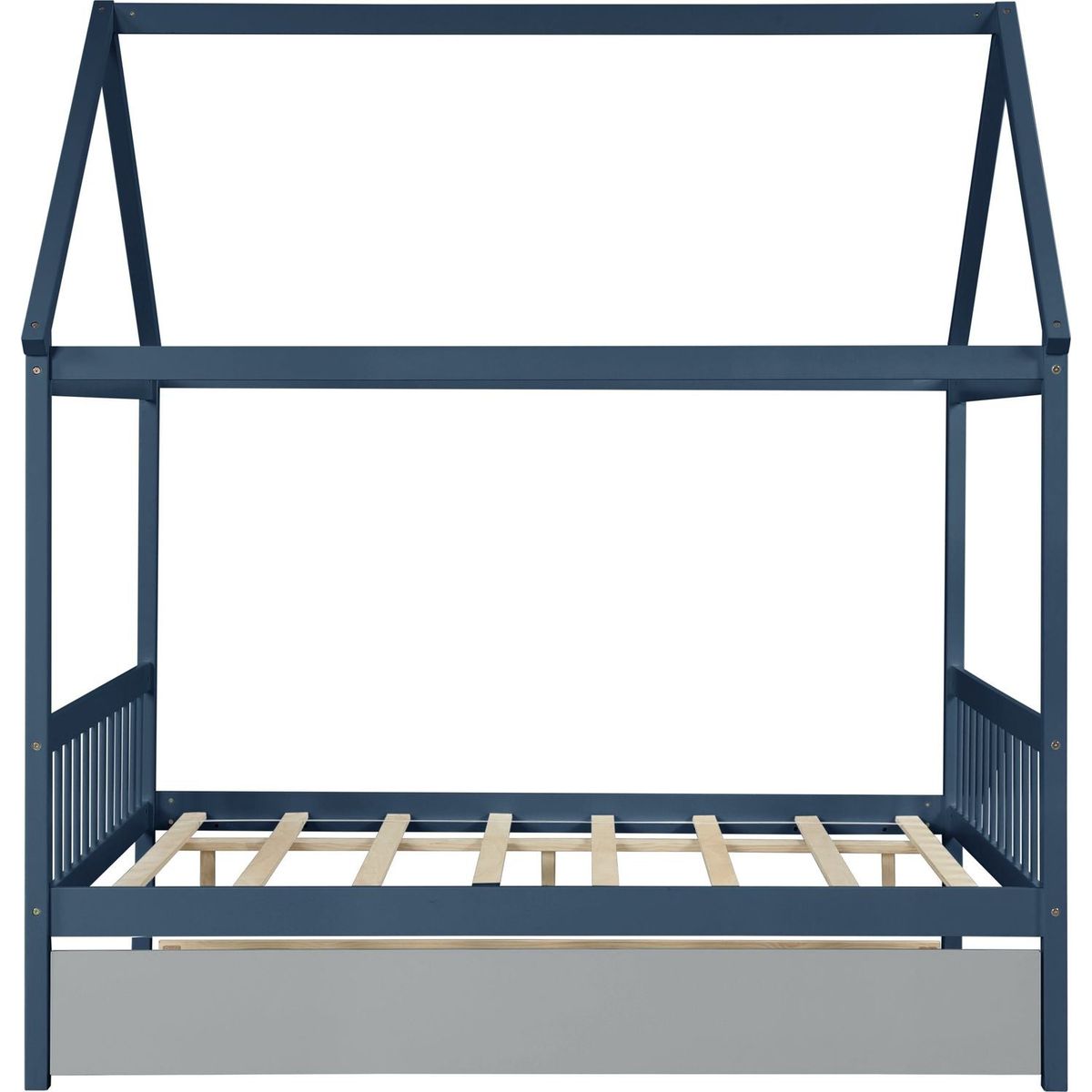 NAVY BLUE HOUSE FULL BED WITH TRUNDLE OF GREY COLOR