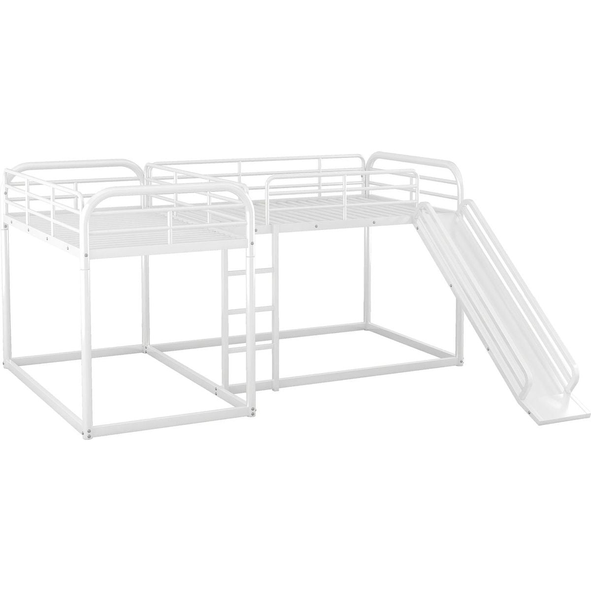 Full and Twin Size L-Shaped Bunk Bed with Slide and Short Ladder, White