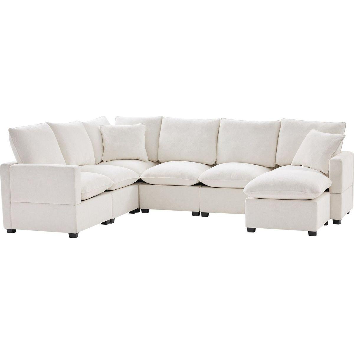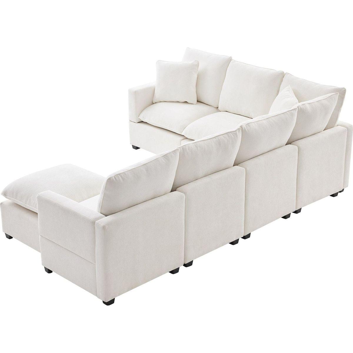 110x84" Modern U Shape Modular Sofa, 7 Seat Chenille Sectional Couch Set with 2 Pillows Included, Freely Combinable Indoor Funiture for Living Room, Apartment, Office, 2 Colors