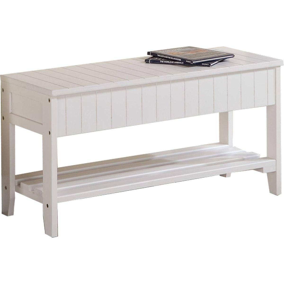 Give your entryway a welcoming look with the Rennes White Finish Quality Solid Wood Shoe Bench With Storage. This bench provides a convenient place to sit, while also giving you storage for shoes or anything you want to keep organized. Open the bench to reveal even more storage for blankets, coats, toys and more. The sturdy wooden frame with slat top and sides has classic charm while a streamlined design gives a modern feel. Choose the available finish option that works with your decor.