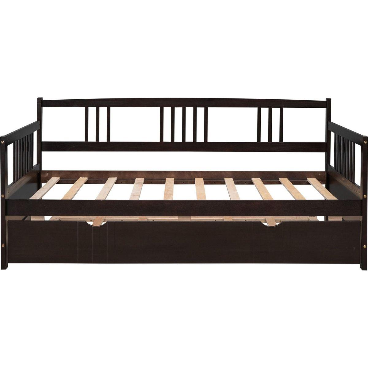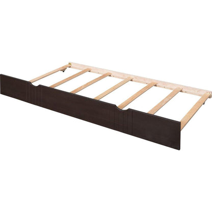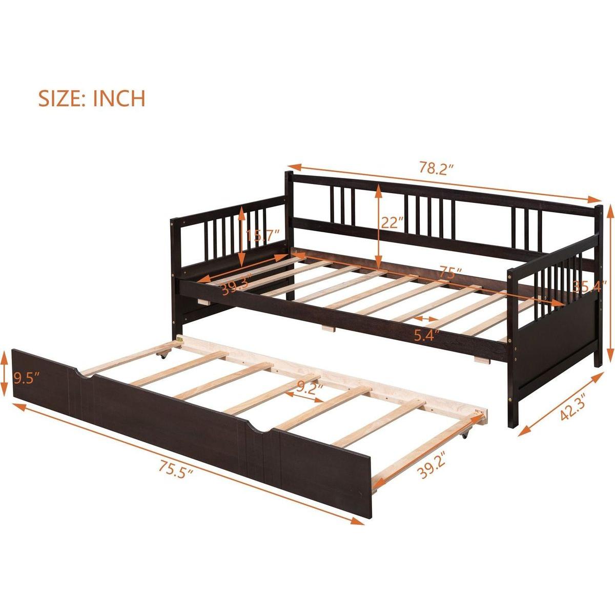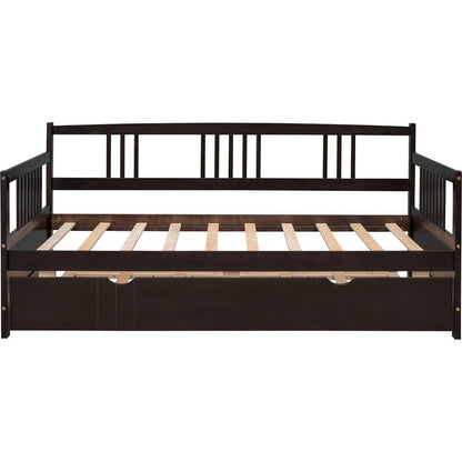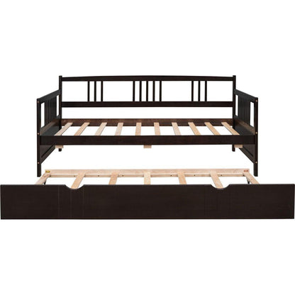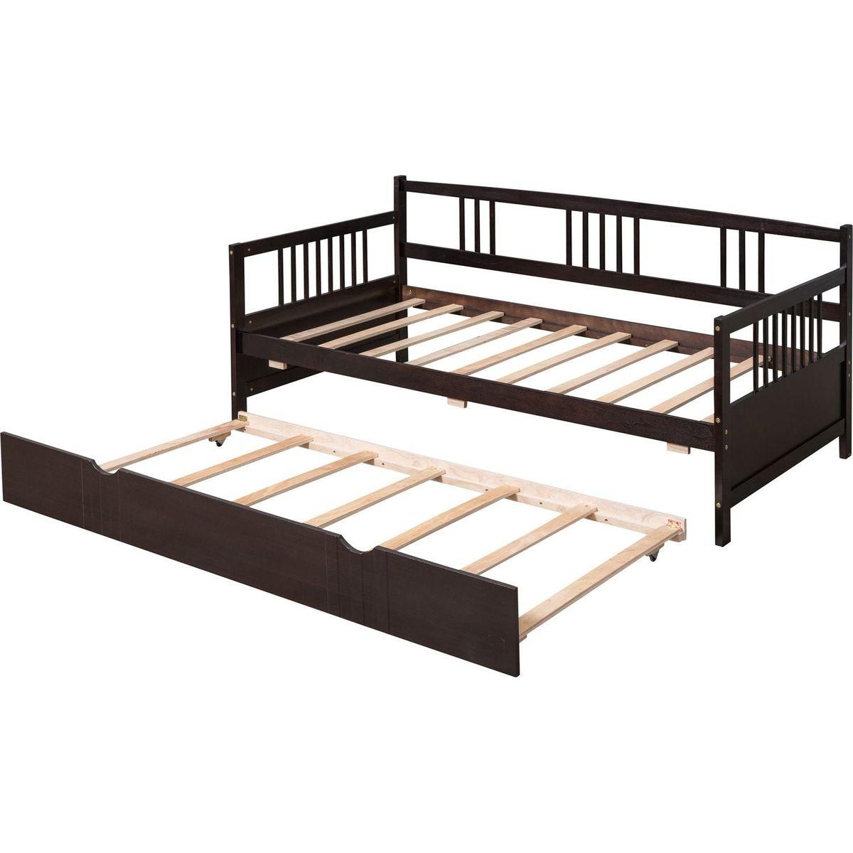 Twin Size Daybed Wood Bed with Twin Size Trundle, Espresso